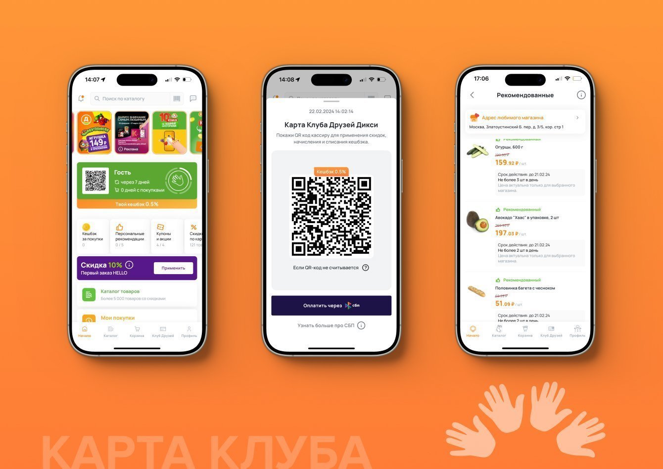– Программа лояльности, которая включает скидки по карте, возможность выбора любимых товаров, персонализированные купоны и рекомендации товаров.