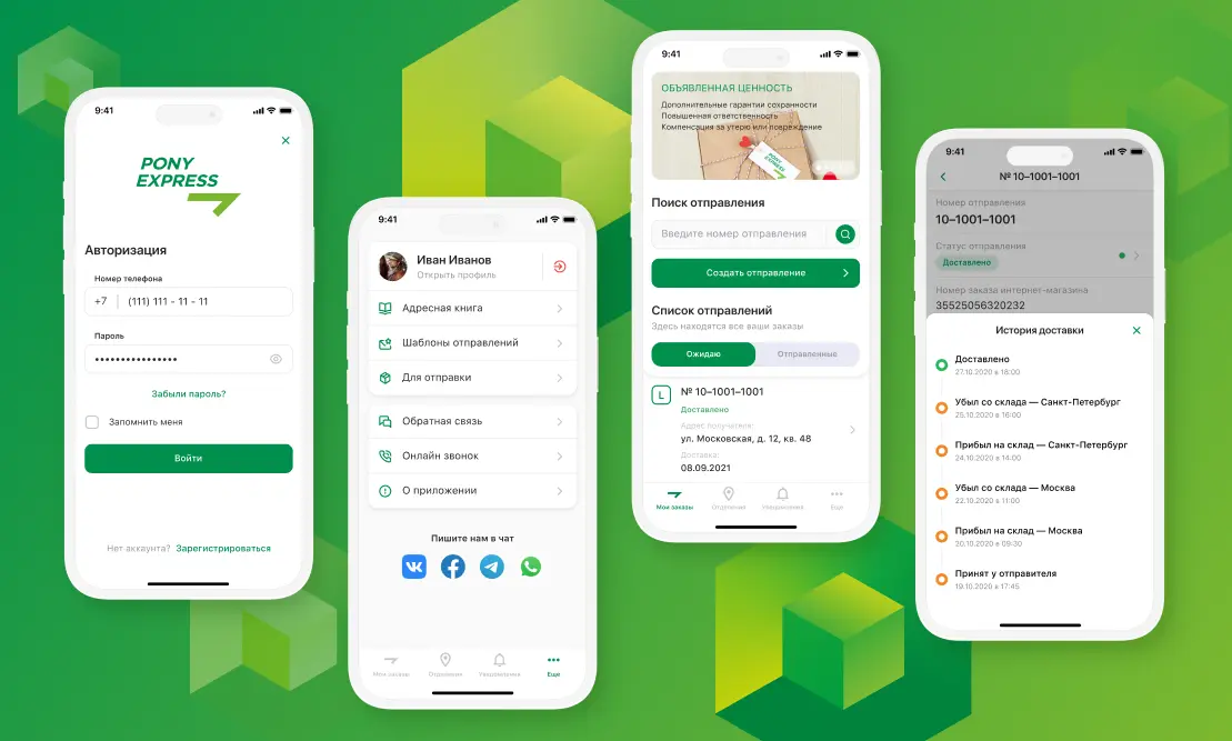 Компания PONY EXPRESS предложила команде Globus IT разработать мобильное приложение для клиентов, в котором пользователям будет легко отслеживать посылки и оформлять их.