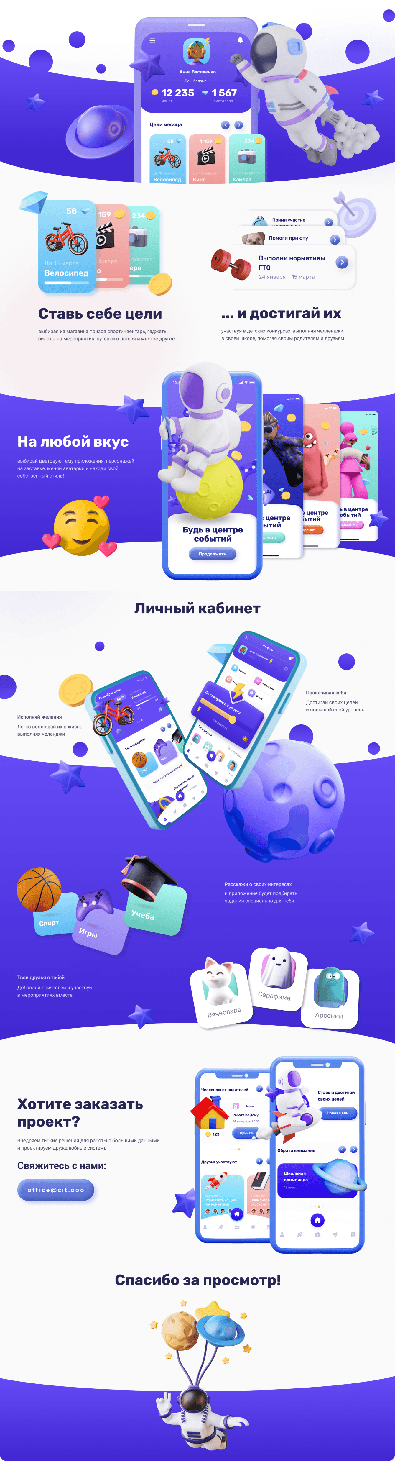 Предложена и утверждена концепция игровой механики, в которой школьник участвует в ивентах, выполняет задания учителя, вожатого или родителя. Награда за результат — внутриигровая валюта, которую можно потратить на всякие приятности в магазине призов приложения.