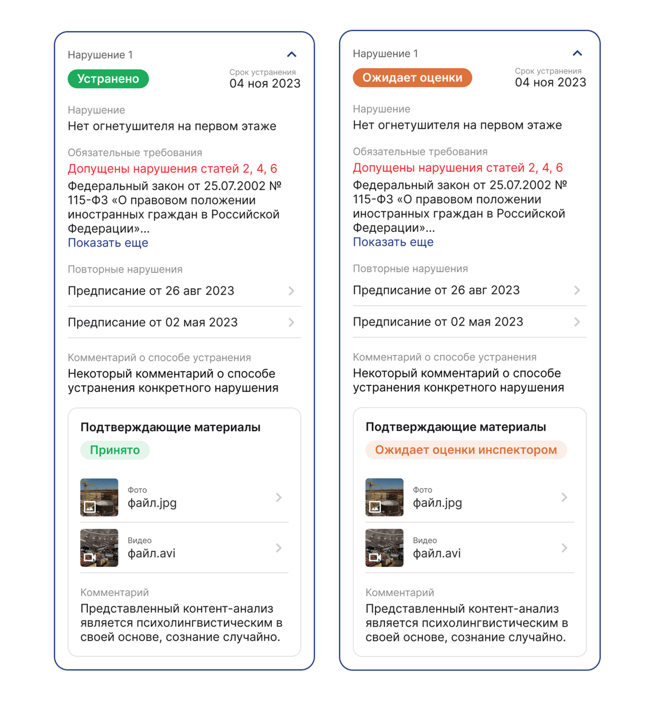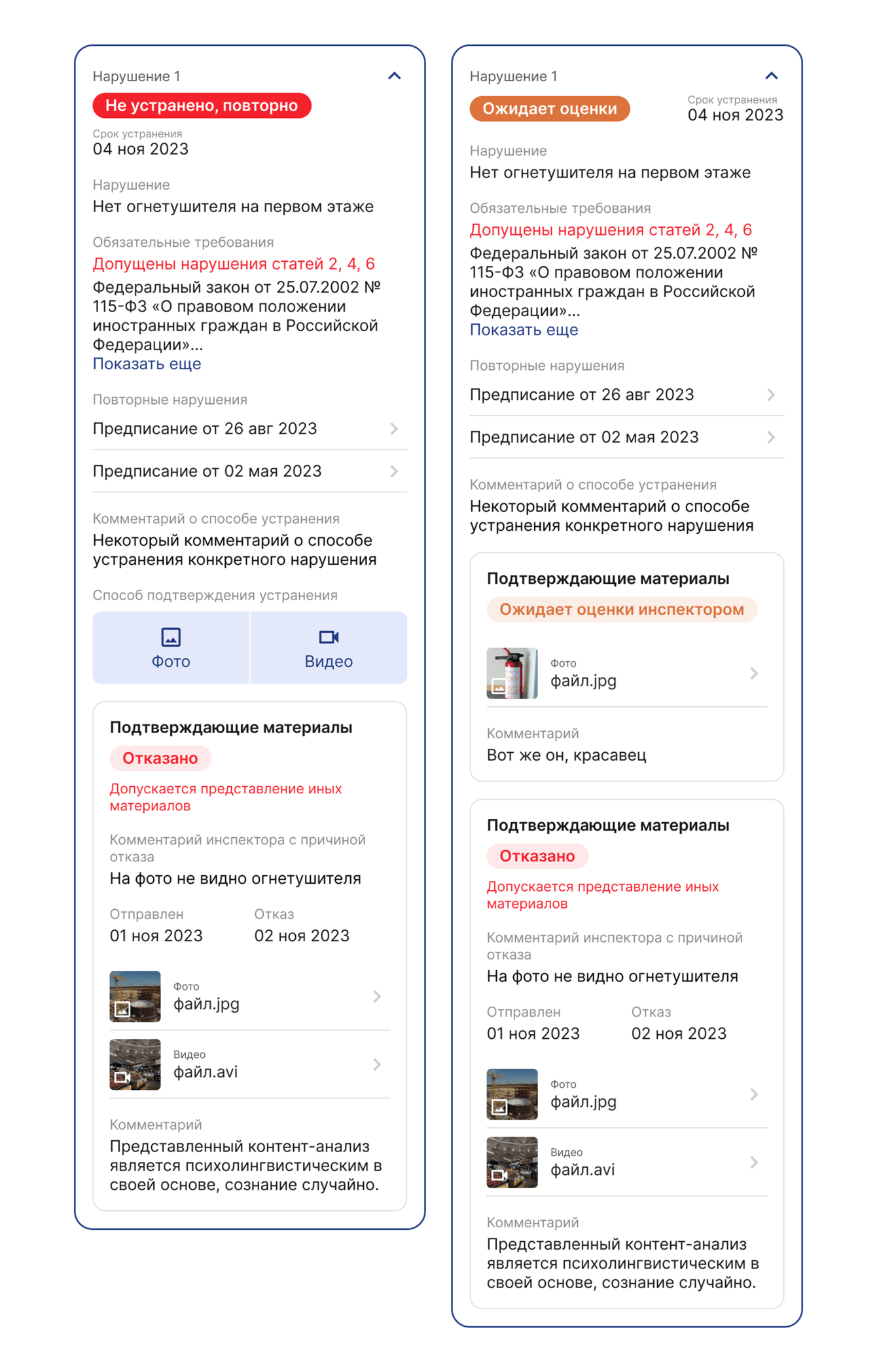 Вы делаете все, что нужно для исправления каждого из нарушений и доказываете это, посылая инспектору подтверждающие материалы: документы, фото или видео, иногда с геометками.