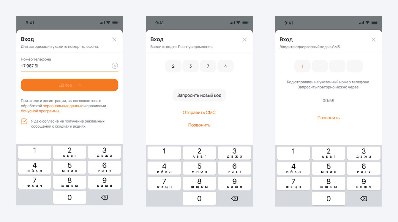 5) Дополнительные методы авторизации. Реализовали возможность авторизации пользователя по звонку с мобильного телефона — требуется ввести последние 4 цифры номера. Эта услуга дешевле, чем отправка sms. В дальнейшем авторизация для данного пользователя будет осуществляется по push-уведомлению (после проверки валидности fcm токена). Для клиента данный способ авторизации является условно бесплатным. Таким образом, мы не только снижаем операционные расходы заказчика, но и минимизируем риск того, что пользователь не сможет авторизоваться из-за недоступности сервиса (провайдера связи).