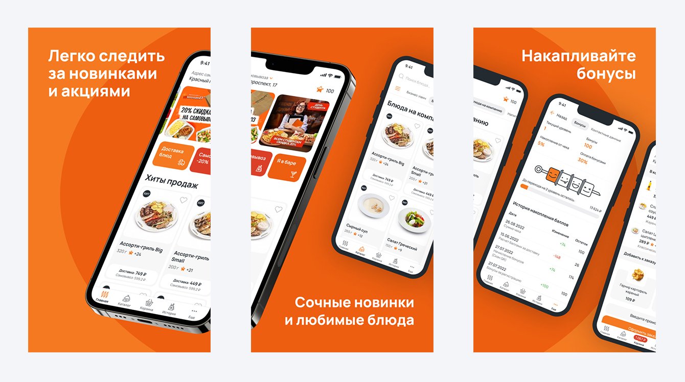 Создать удобное, быстрое мобильное приложение с возможностью заказа блюд из меню гриль-баров ШашлыкоFF, выбора способа доставки, оплаты, а также с интеграцией программы лояльности.