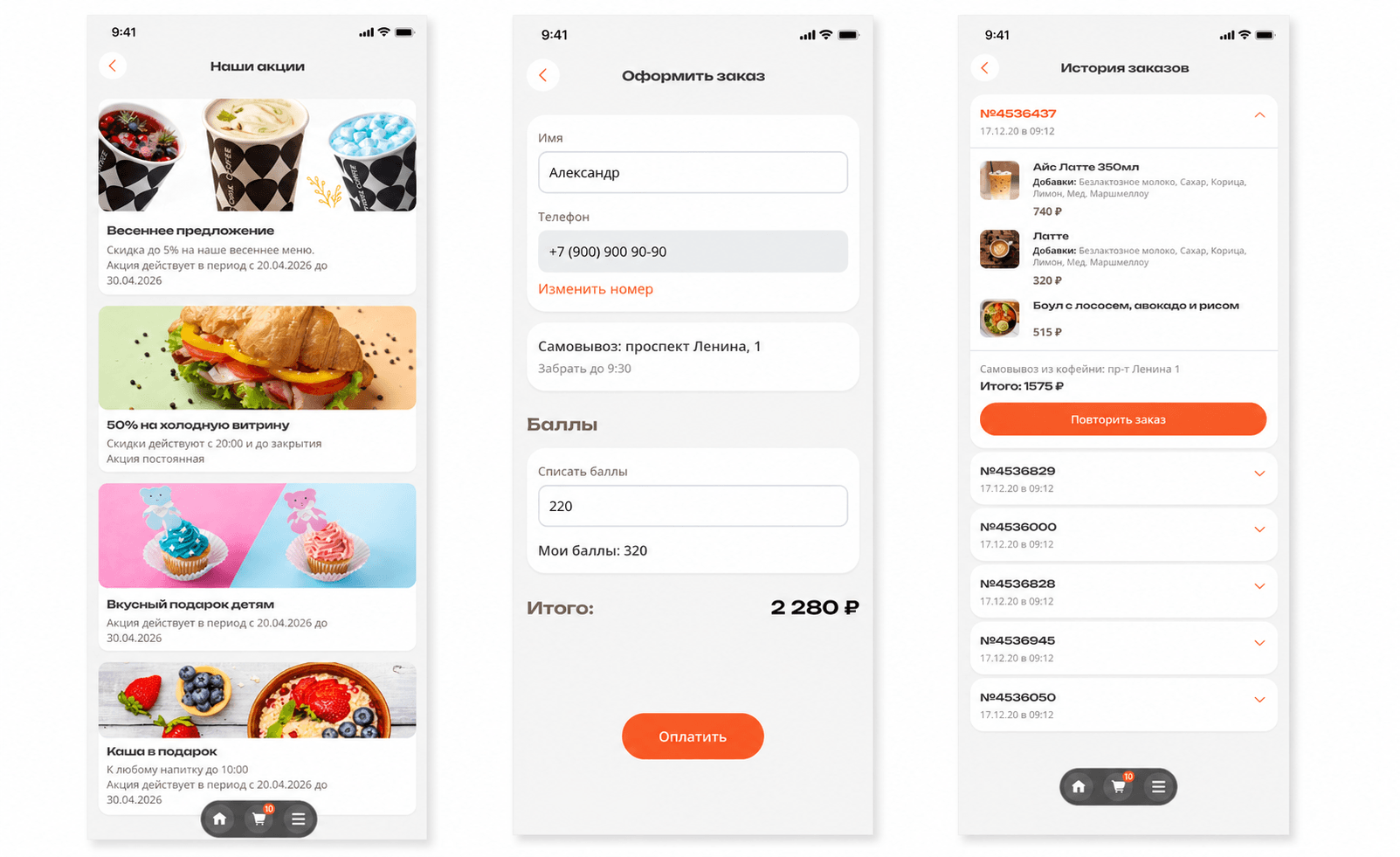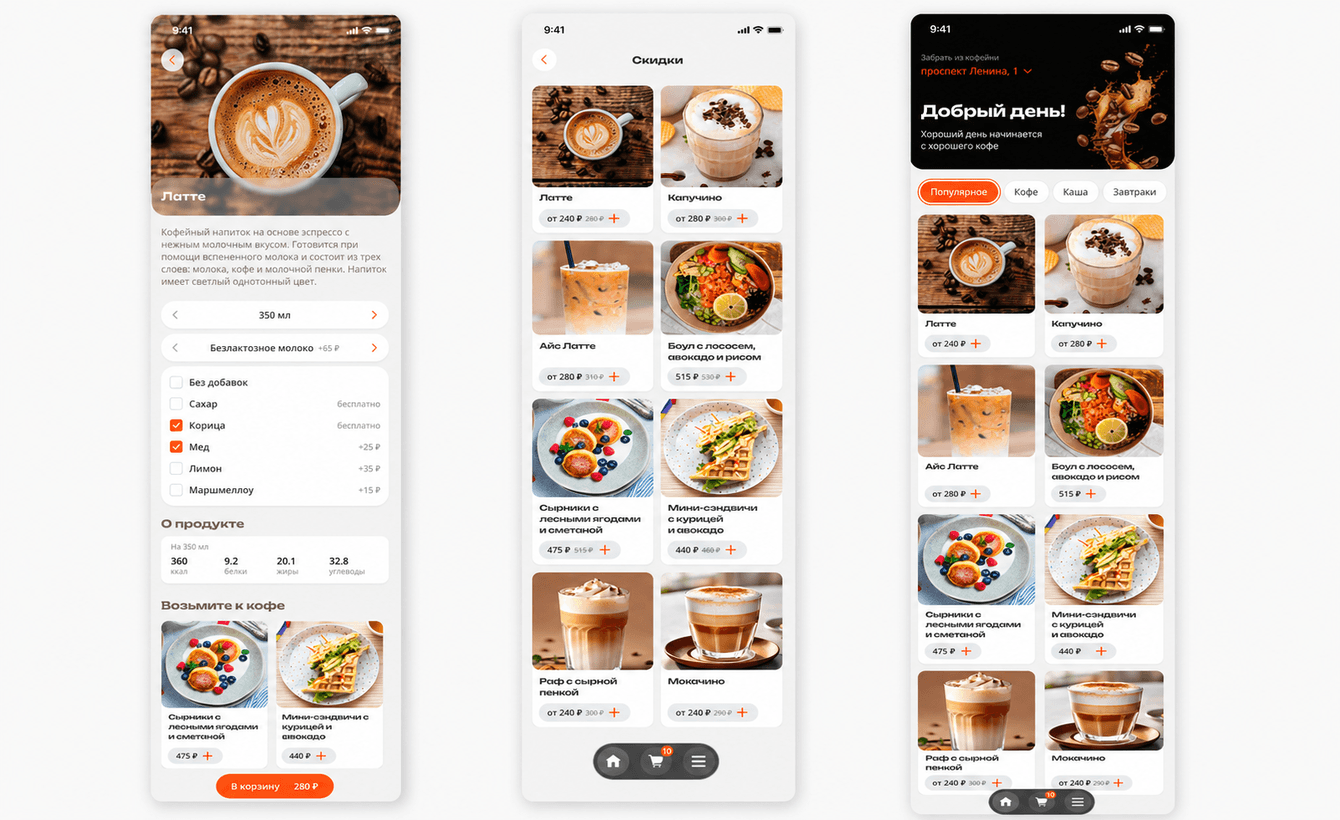 находить ближайшие кофейни и получать бонусы по программе лояльности.