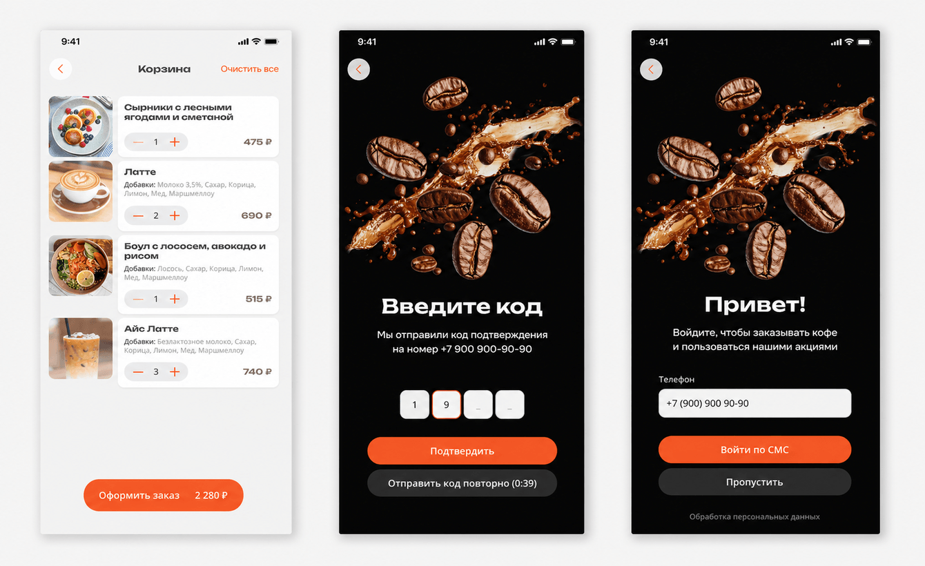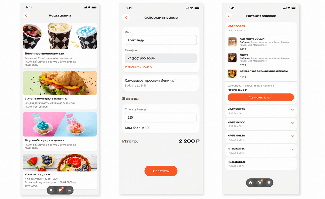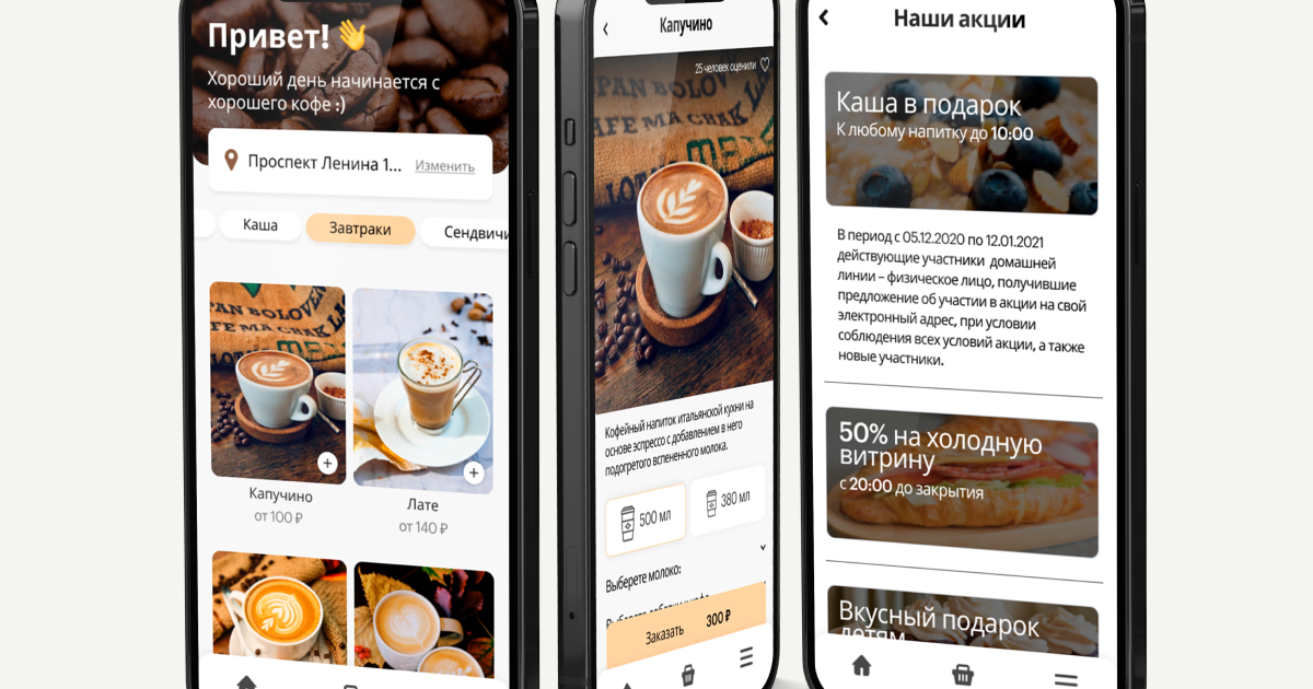 Создать удобное мобильное приложение для сети кофеен «Территория Кофе», которое позволяет пользователям: