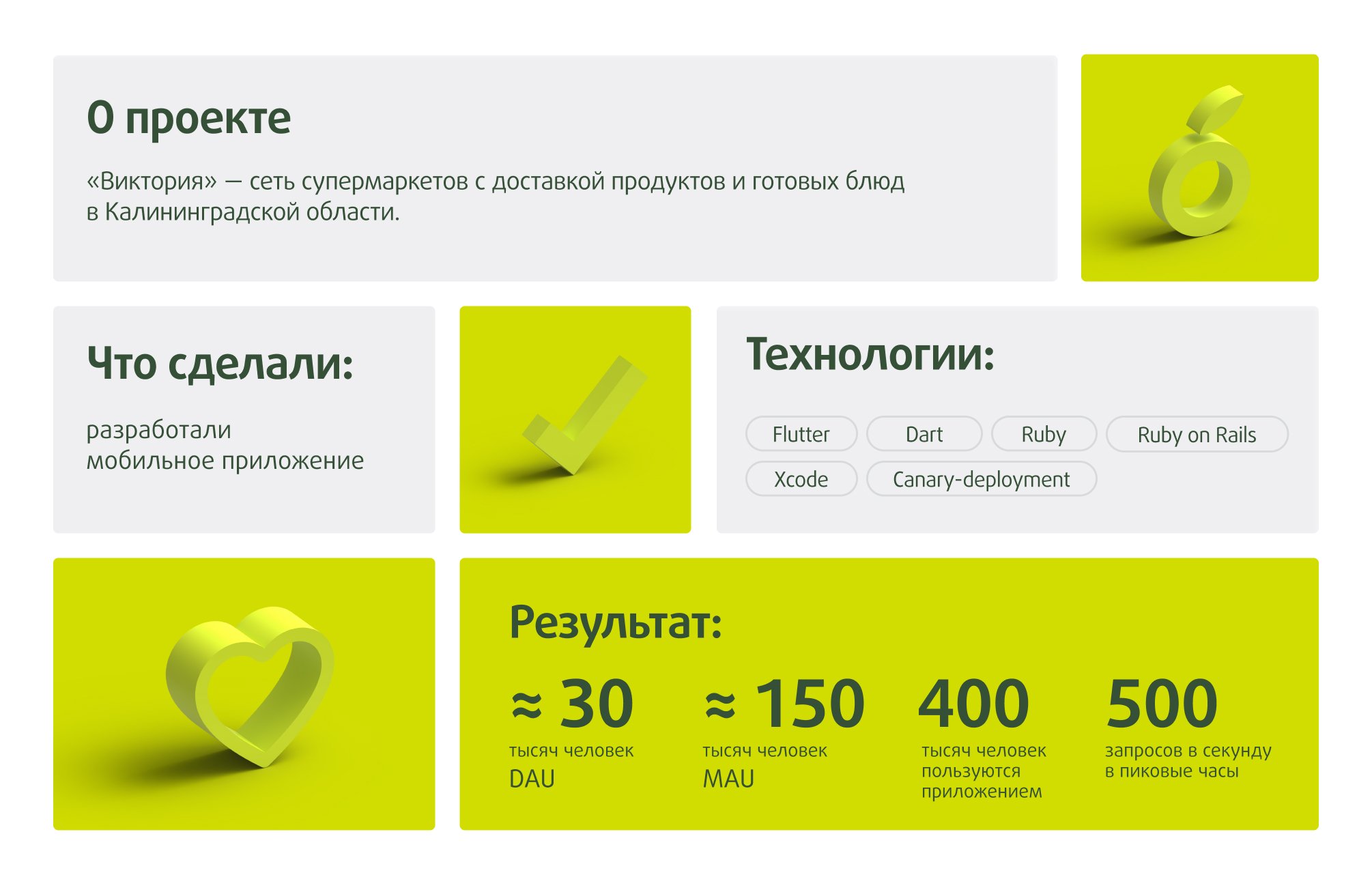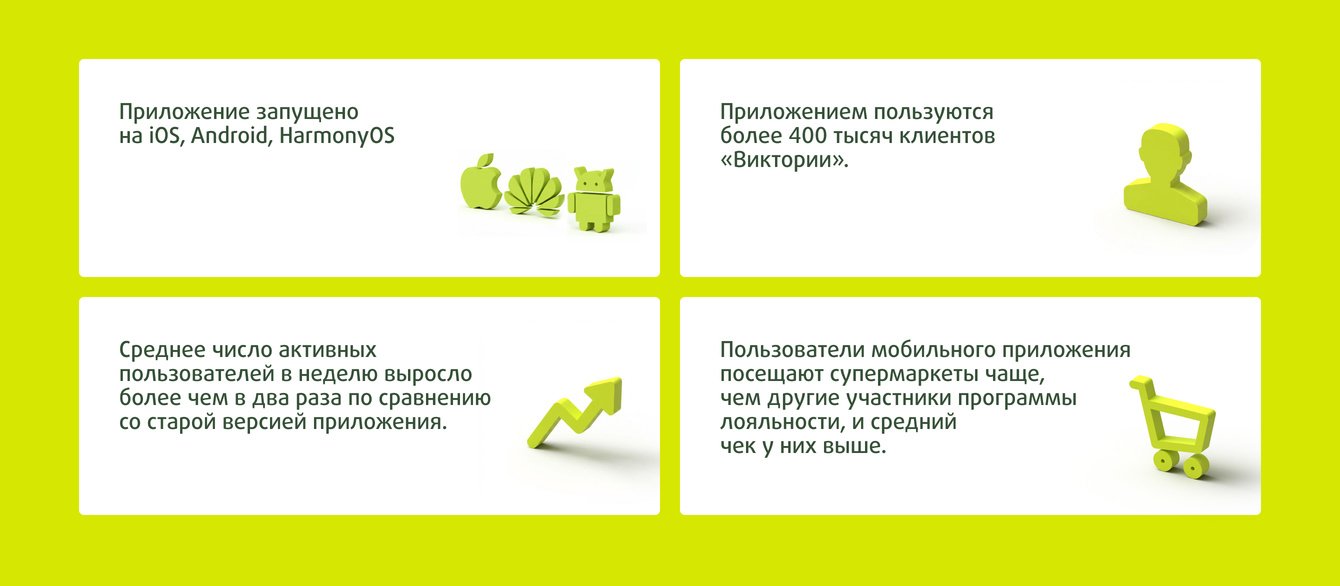 Сеть магазинов «Виктория» обновила программу лояльности. В ней появились новые функции и механики, которые нужно было отразить в мобильном приложении. Компания решила, что для интеграции с обновленной программой лояльности нужно новое приложение.