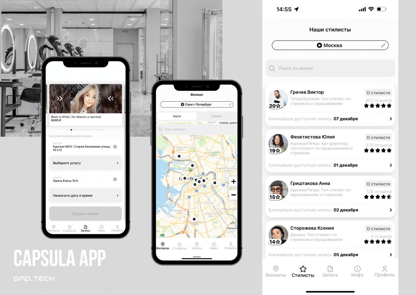 Объединили всех стилистов сети в одно окно, с помощью которого клиент может оценить рейтинг и выбрать стилиста по душе и увидеть его доступность для записи на ближайшее время. Таким образом, мы интегрировали клиентов сети в одну экосистему.