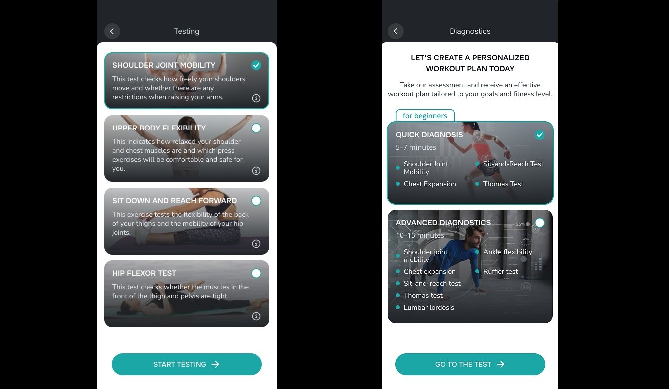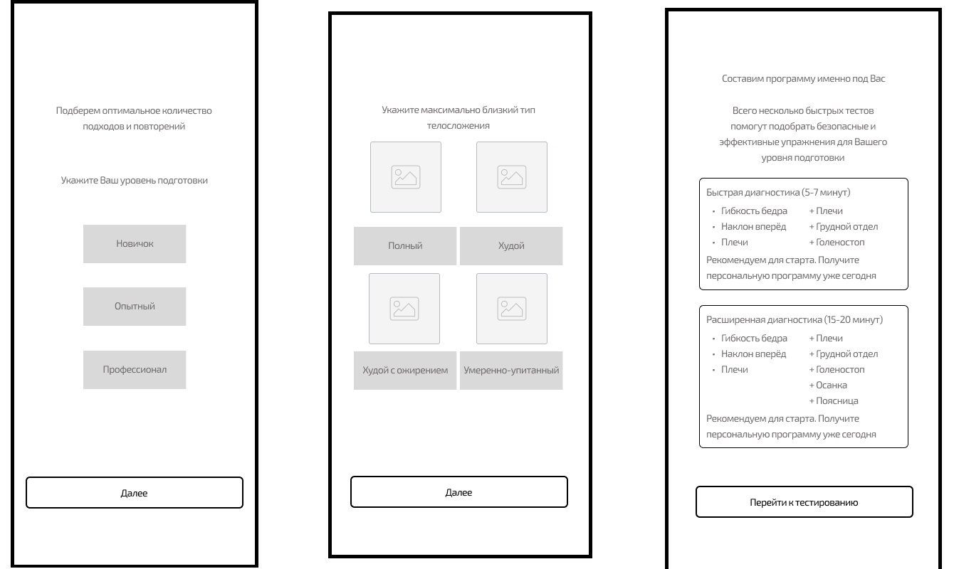 - Тестирование физической подготовки для новых пользователей для составления индивидуальной программы под них