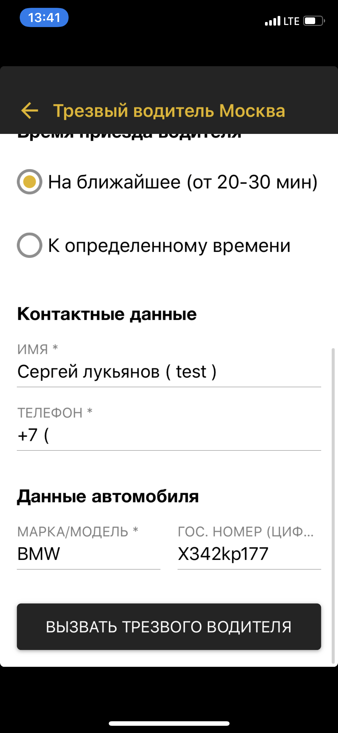 Создать мобильное приложение для быстрого заказа "Трезвого Водителя"!