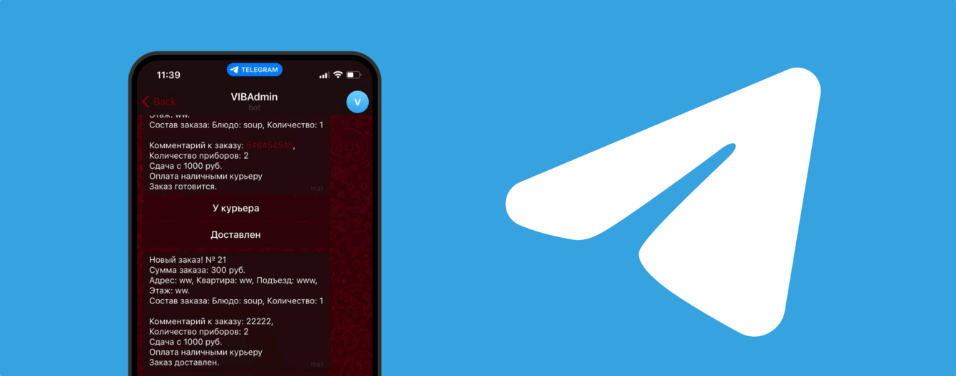 Для удобства их работы был разработан телеграм-бот, который отображает новые заказы и в один клик позволяет обновлять их статус.