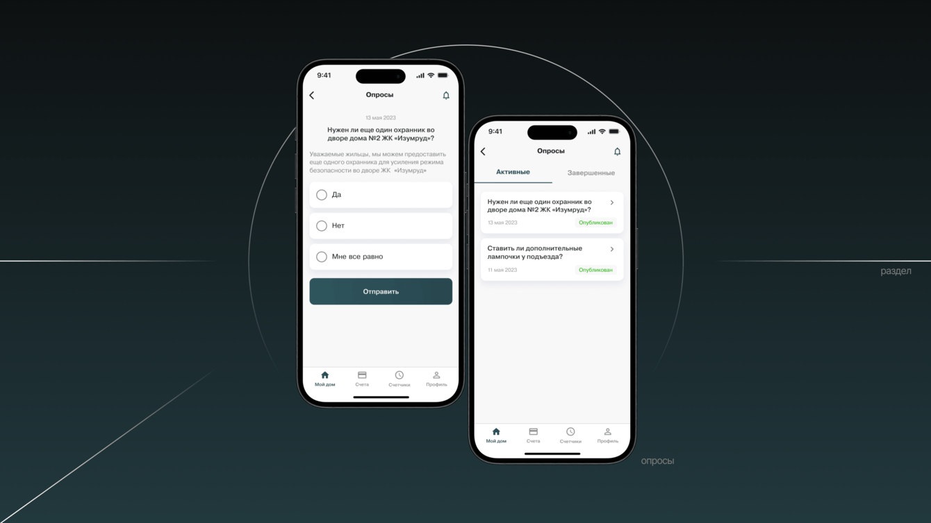Для решения вопросов, связанных с благоустройством, реализована возможность проведения опросов и голосований. В результате каждый житель может высказать свое мнение, тем самым снизив нагрузку на менеджеров управляющей компании.