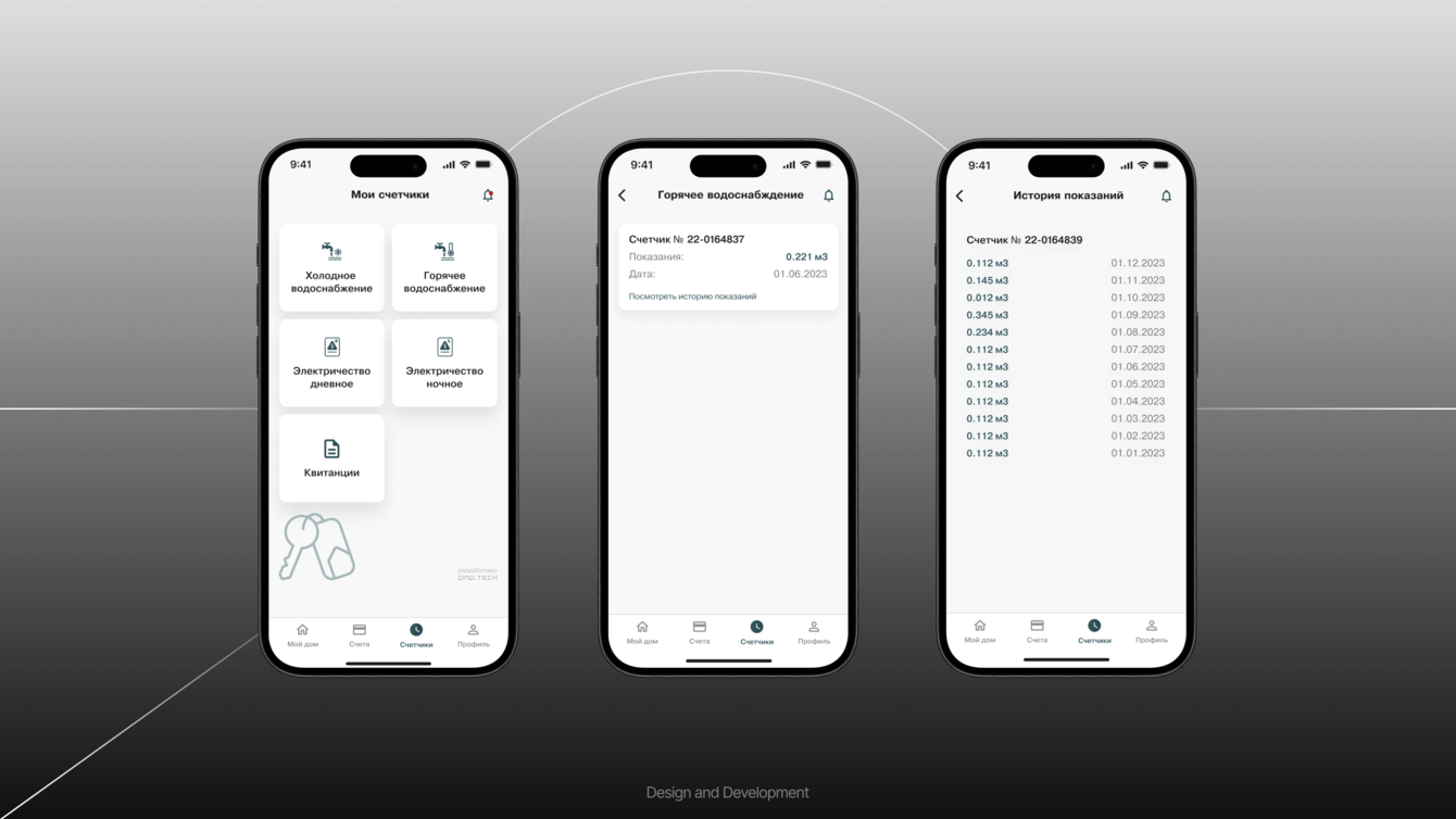 Кроме оптимизации управления, перед нами была поставлена задача обеспечения доступа жильцов к показаниям приборов учета. Это позволит каждому контролировать свои расходы на электроэнергию, потребление горячей, холодной воды, отопление.