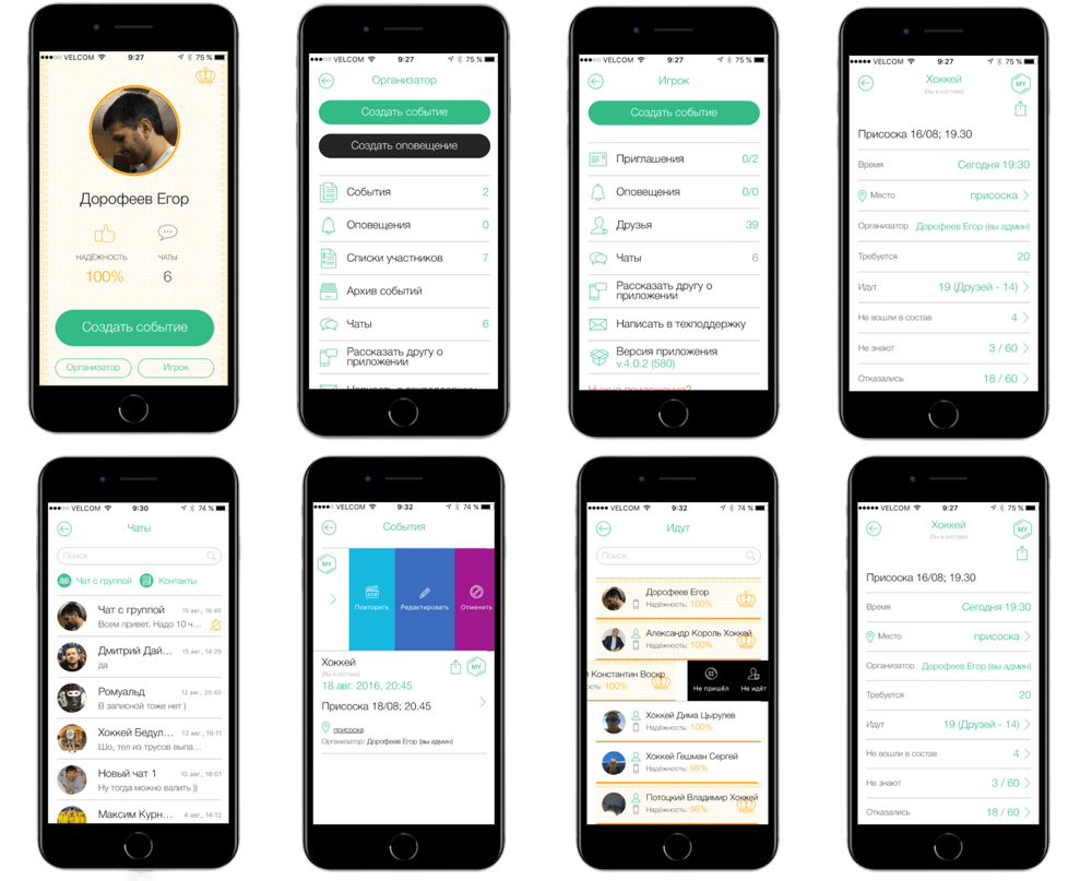 - Добавление игроков в список друзей, чтобы знать, кто будет на мероприятии;