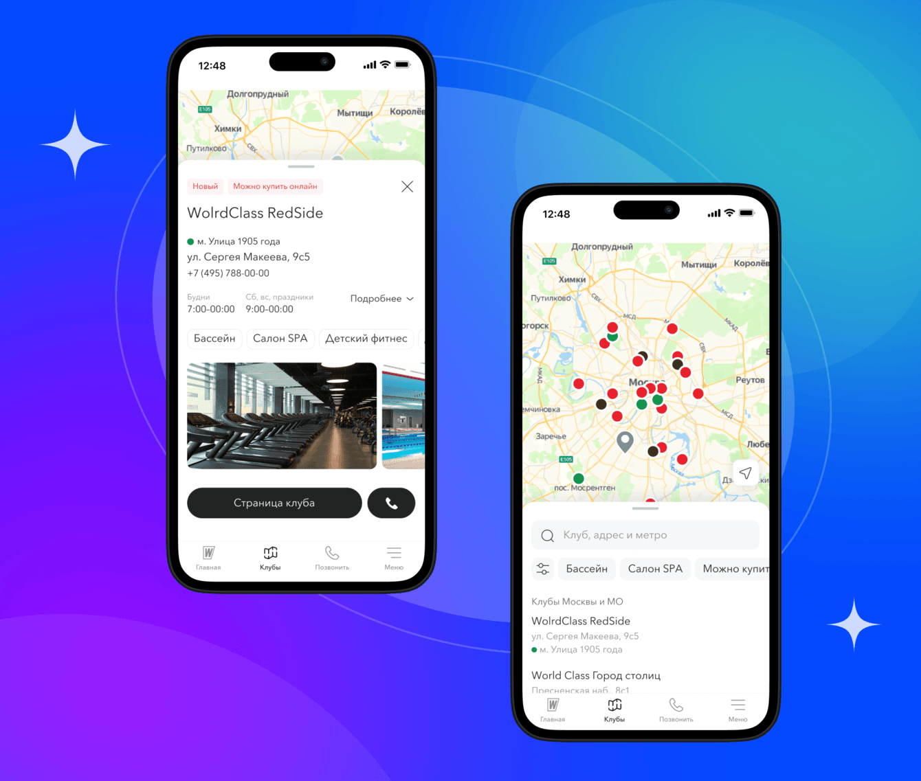 В рамках проекта мы интегрировались с мастер-системой World Class на базе 1С. Теперь все доступные фитнес-клубы, тренировки и тренеры всегда актуальны. Они синхронизируются с изменениями в основной системе и не зависят от внимательности контент-менеджера.