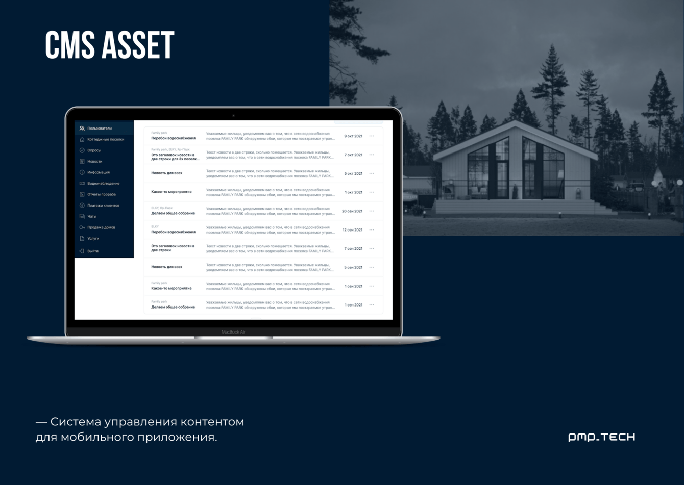 1. Актуальные новости и мероприятия по конкретному коттеджному посёлку;