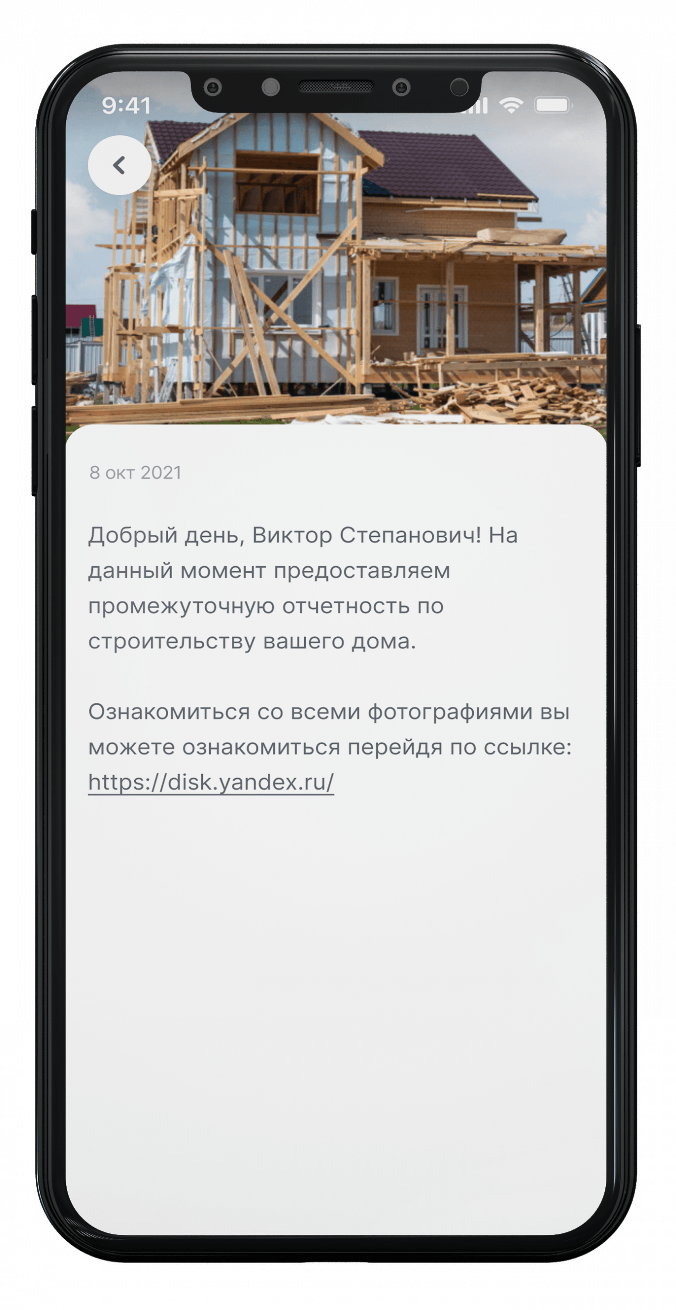 12. Отчётам. Получение фотоотчётов по каждому этапу строительства по датам.