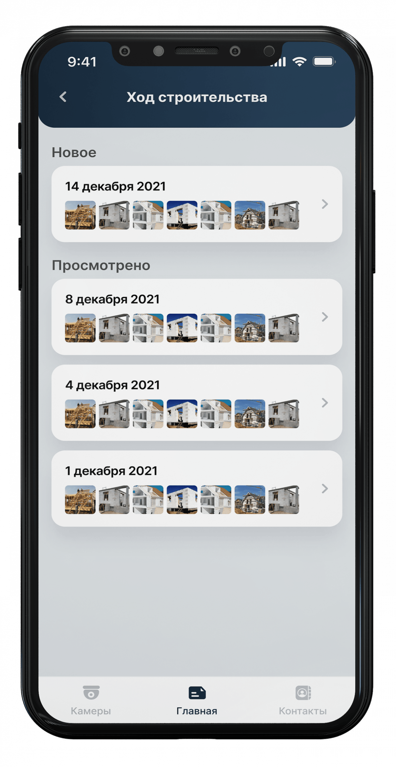 12. Отчётам. Получение фотоотчётов по каждому этапу строительства по датам.