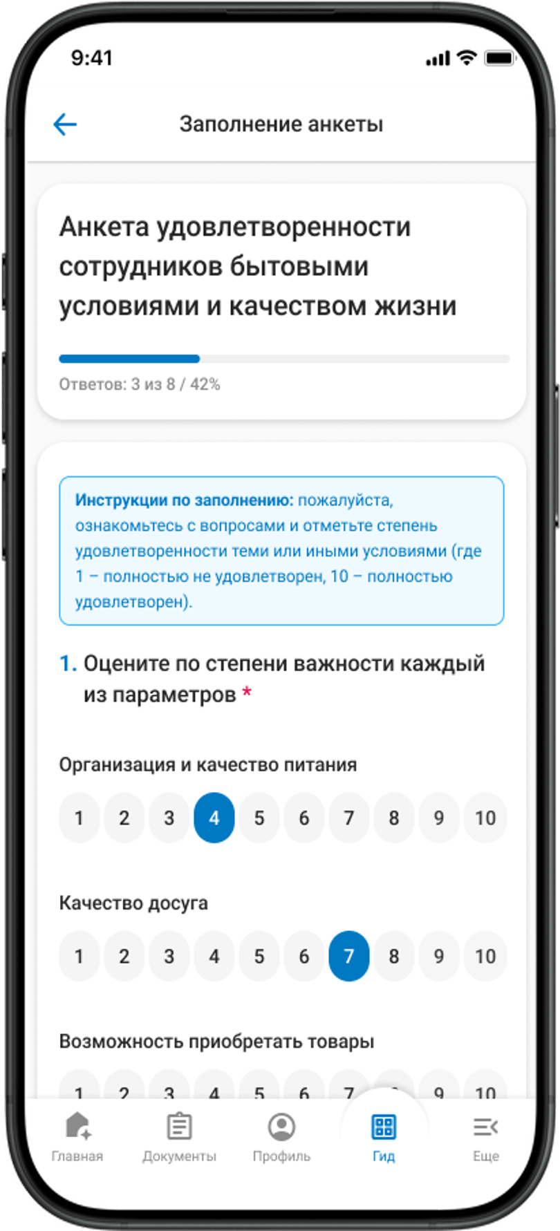 - заполнение опросов и анкет, согласование отпусков, расчетные листки, заказ пропусков, оформление командировок, получение социальных выплат, новости и мероприятия, гид по вахте, уведомления, чаты.