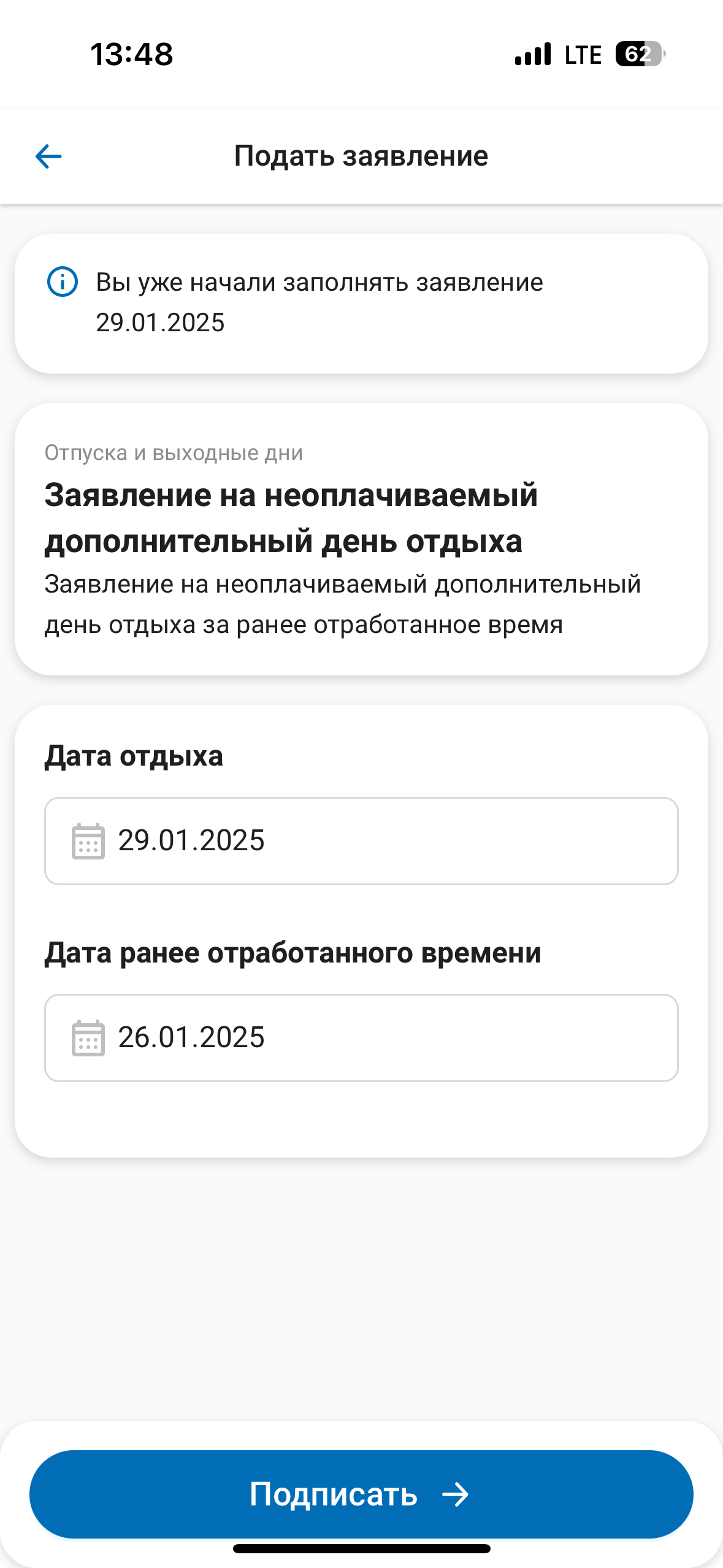 - подача заявлений на отпуск;