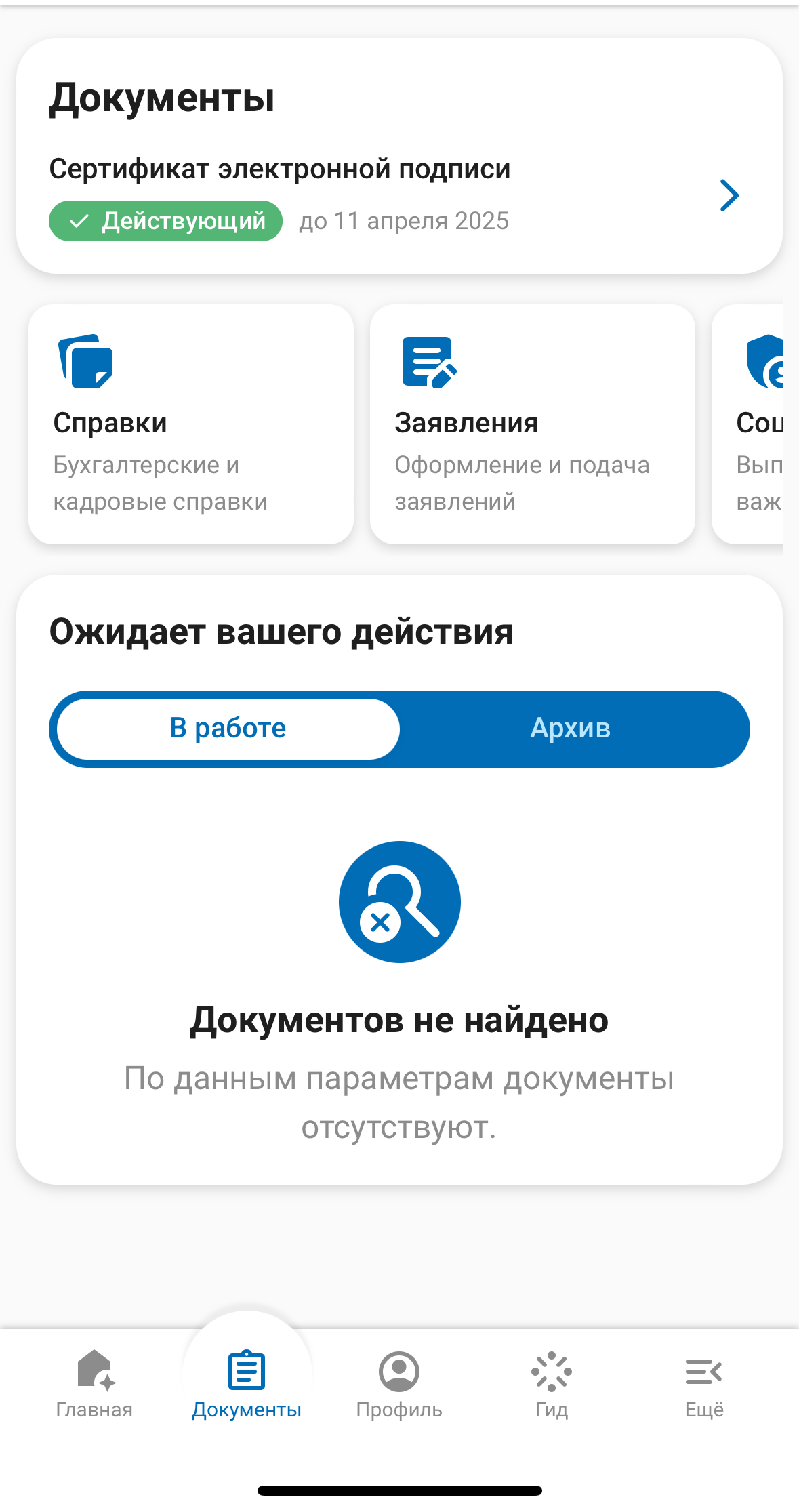 Доступен понятный процесс формирования, заказа, согласования и подписания любых документов;