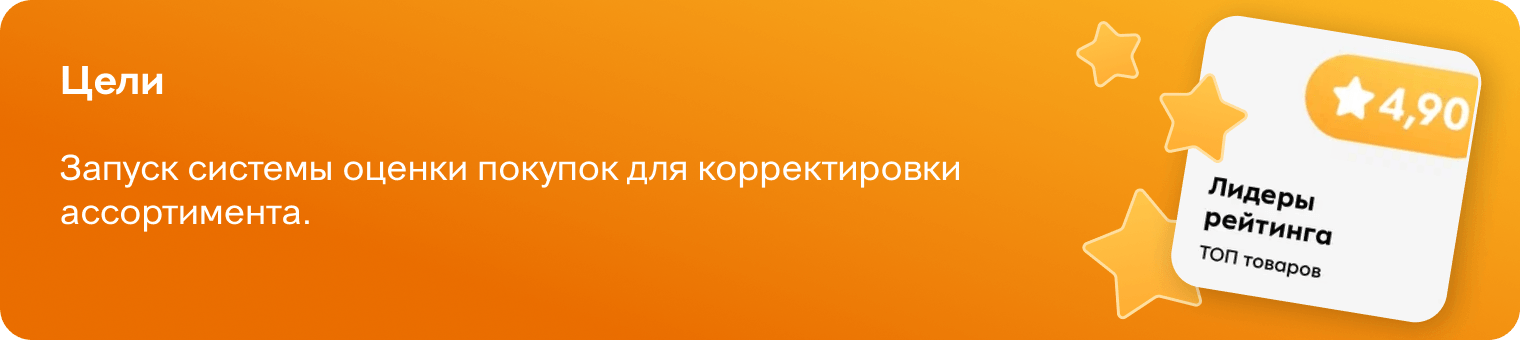 Разработано ранжирование товаров на полках в соответствии с оценками в МП. Товары с высокими оценками (4,90 и выше) выделяются на полке специальными ценниками. Если оценка ниже 4,30, состав продукта обсуждается с производителем или пересматривается цена, если иных вариантов нет — товар заменяется другим.