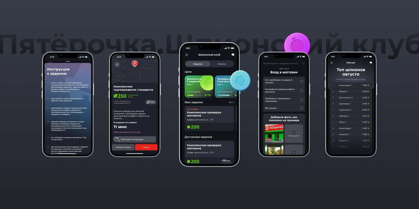 Шпионский клуб — это уникальный инструмент для проверки магазинов силами гостей с системой check-in внутри приложения «Пятёрочка».