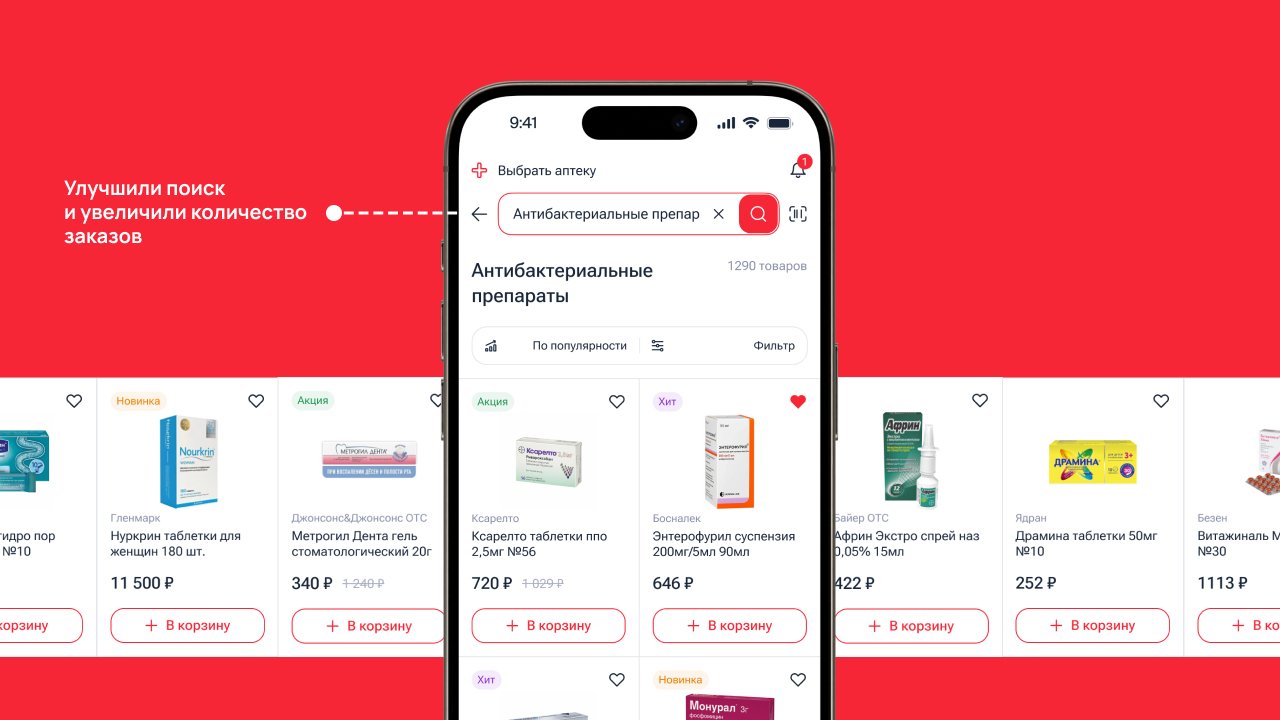 На старте у заказчика уже было коробочное решение, но оно работало медленно и не имело всех необходимых фич, которые были у конкурентов. Все индивидуальные, мелкие доработки стоили космических денег и распрастранялись на всех клиентов imshop. Аудитория аптек — это, в основном, люди в возрасте, поэтому было особенно важно сделать современное и понятное приложение со всем необходимым, обновить интерфейс и повысить usability. Поэтому мы решили разработать свое приложение с нуля.