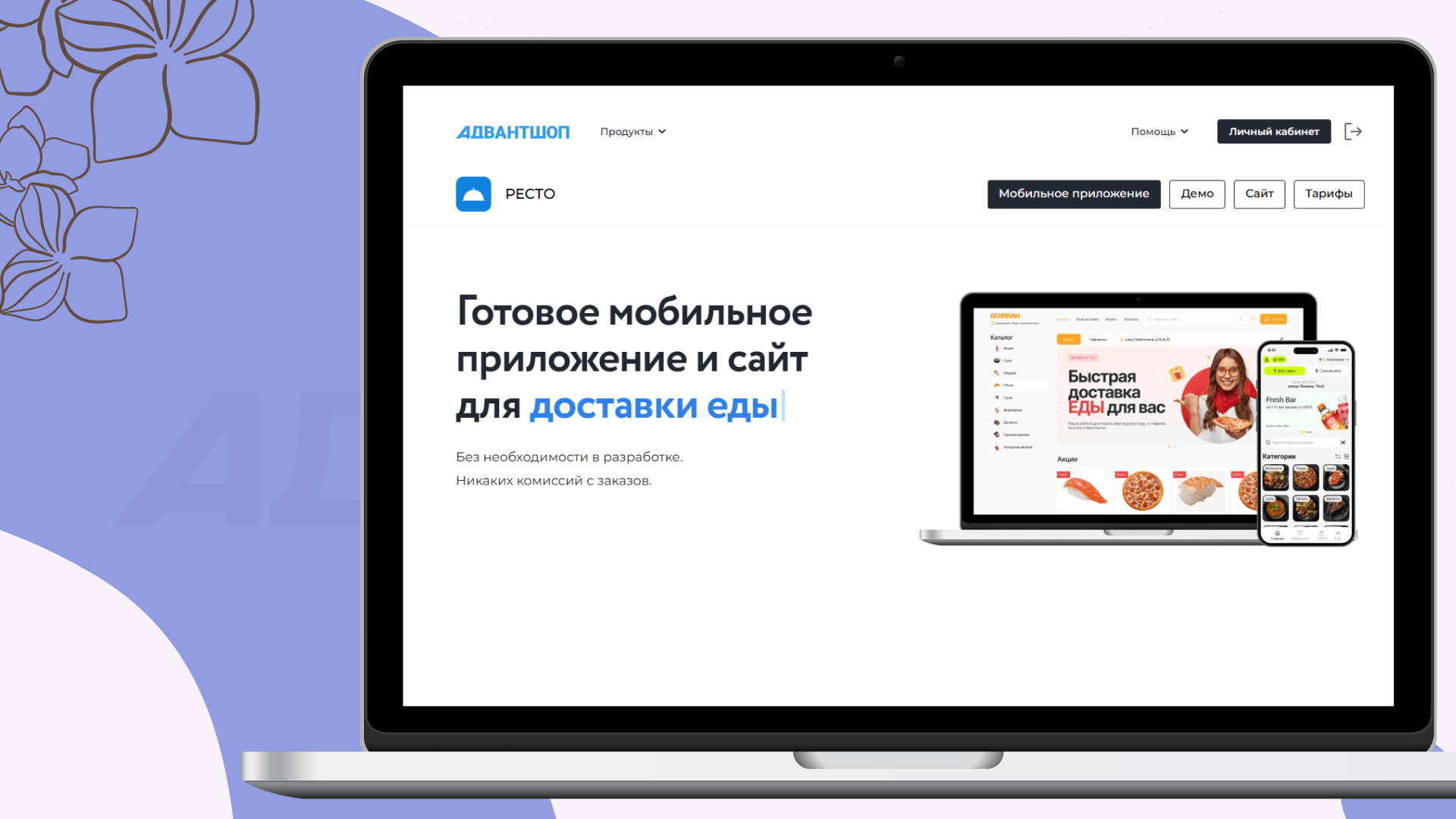 Для развертывания приложения мы создали аккаунт на платформе Адвантшоп.
