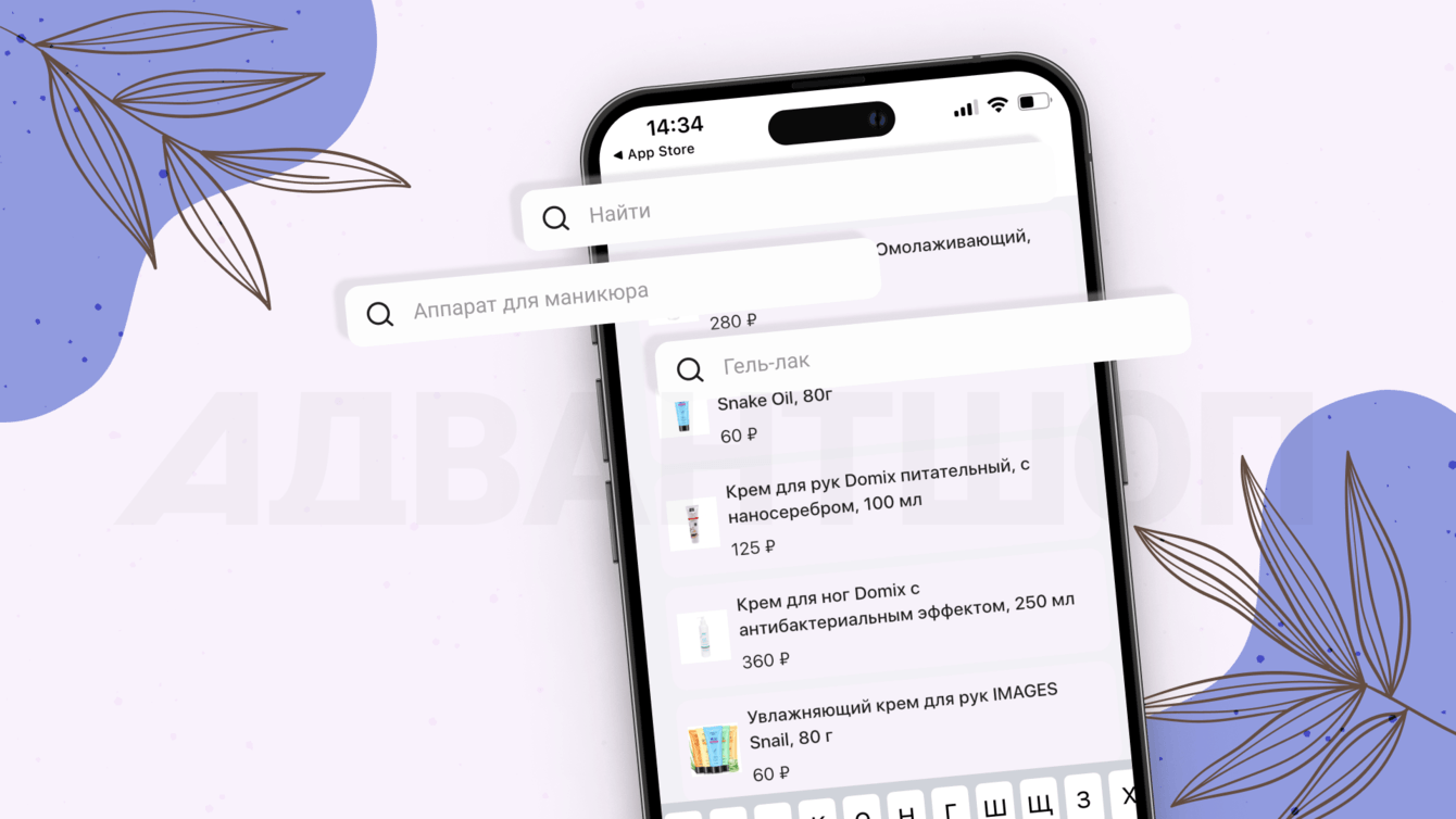 Быстрый поиск товаров по строке, например, лак такого-то бренда.