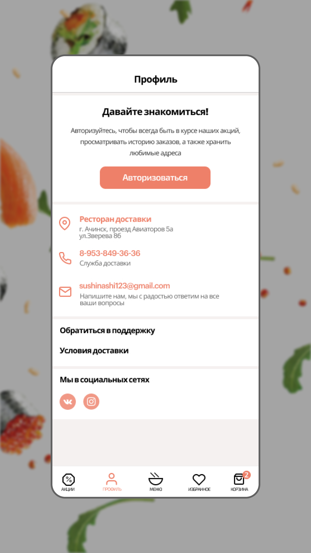 оформлять заказы с доставкой или самовывозом;