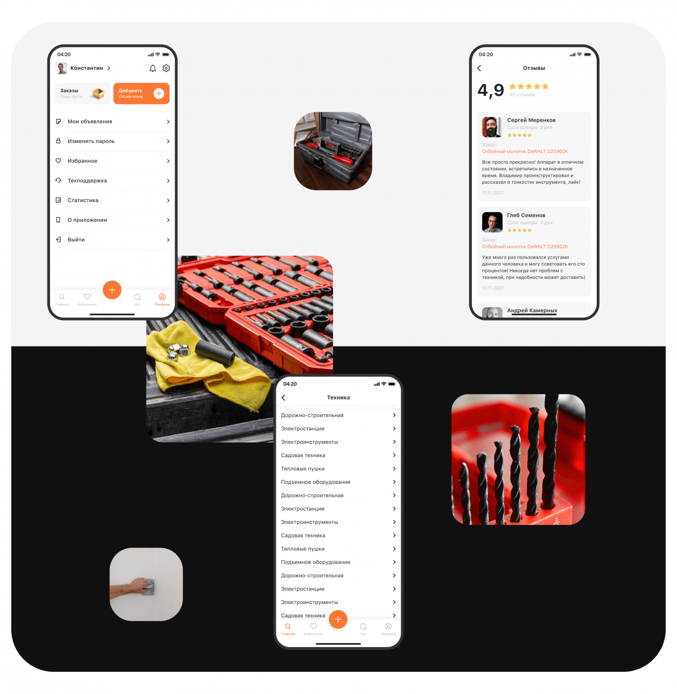 Задача: разработать мобильное приложение, которое позволило бы пользователям осуществлять аренду инструментов.