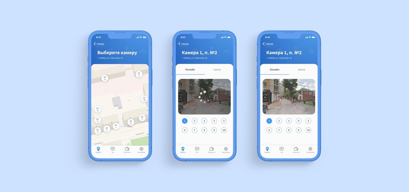 Сделали интерфейсы приложения со следующим набором функций: управление домофоном и шлагбаумом, просмотр камер видеонаблюдения, оплата услуг, подача заявок и доступ к техподдержке.