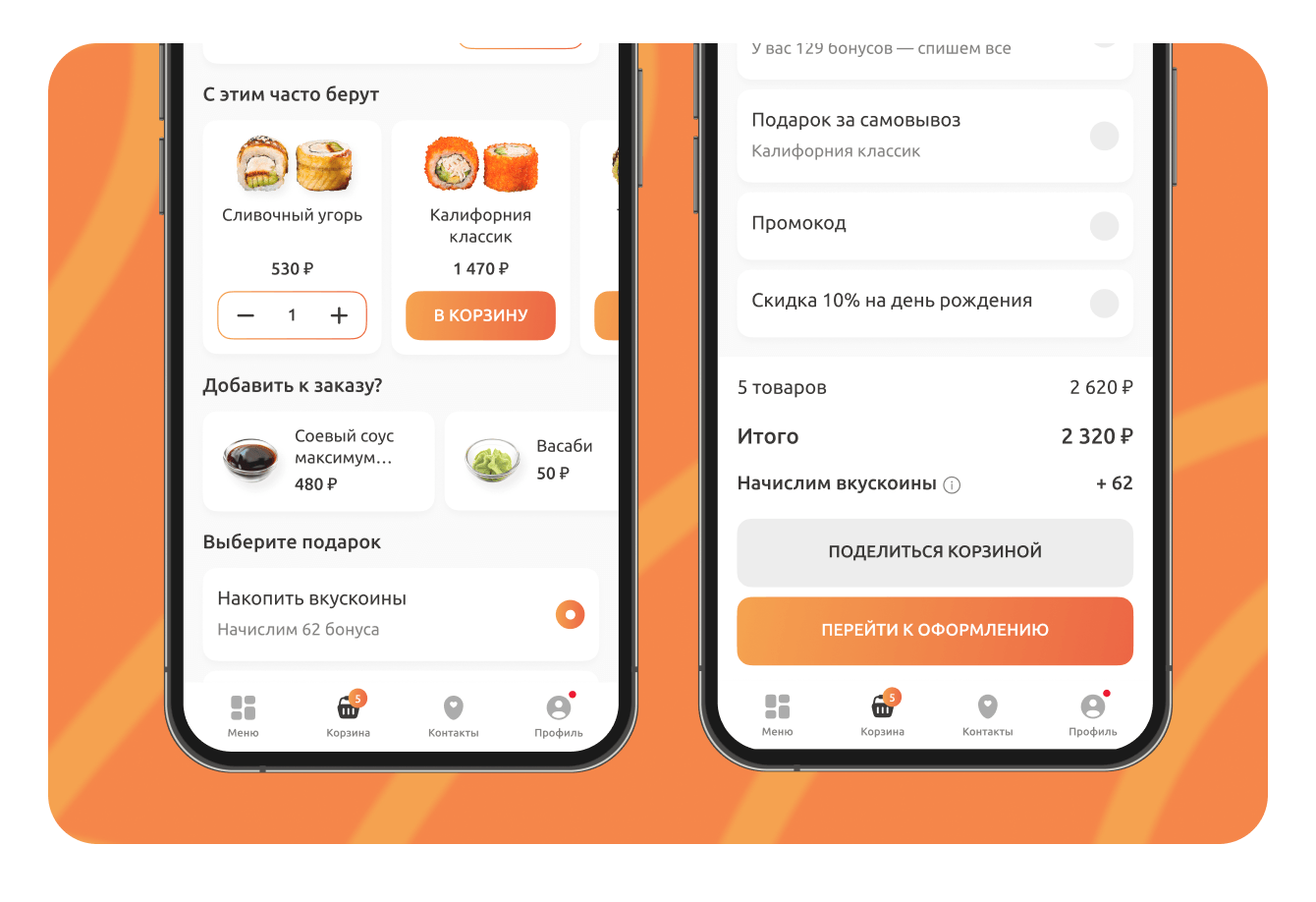 Система лояльности «Вкускоины» уже была внедрена ранее, и наша задача заключалась в том, чтобы органично интегрировать ее в новое приложение.
