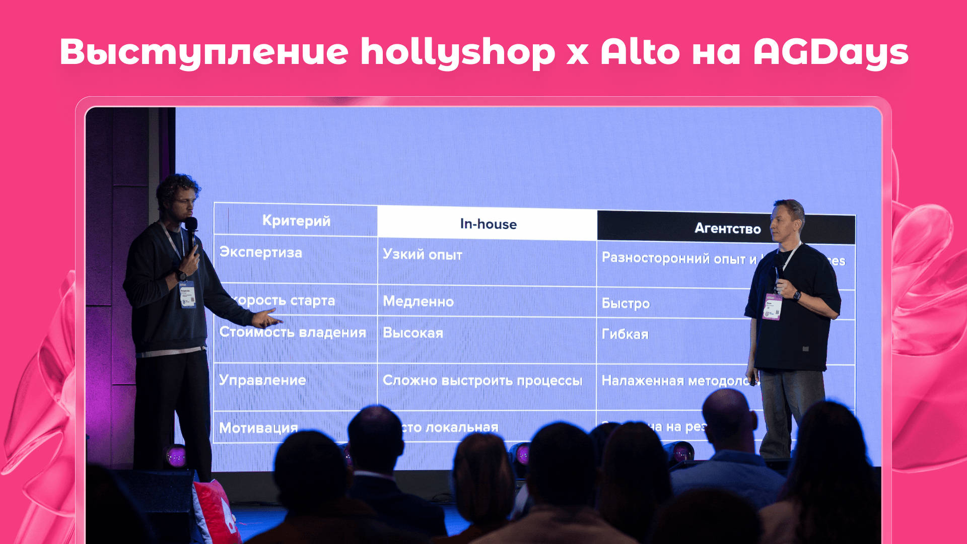 Иван, наш СЕО, вместе с Владом выступили на конференции AGDays в Екатеринбурге, которую мы проводим для IT индустрии с 2020 года. Рассказывали про совместный процесс работы, сравнивали экономику и скорость. Влад делился, как они отбирают подрядчиков и почему в их случае логичнее был аутсорс, а не инхаус.