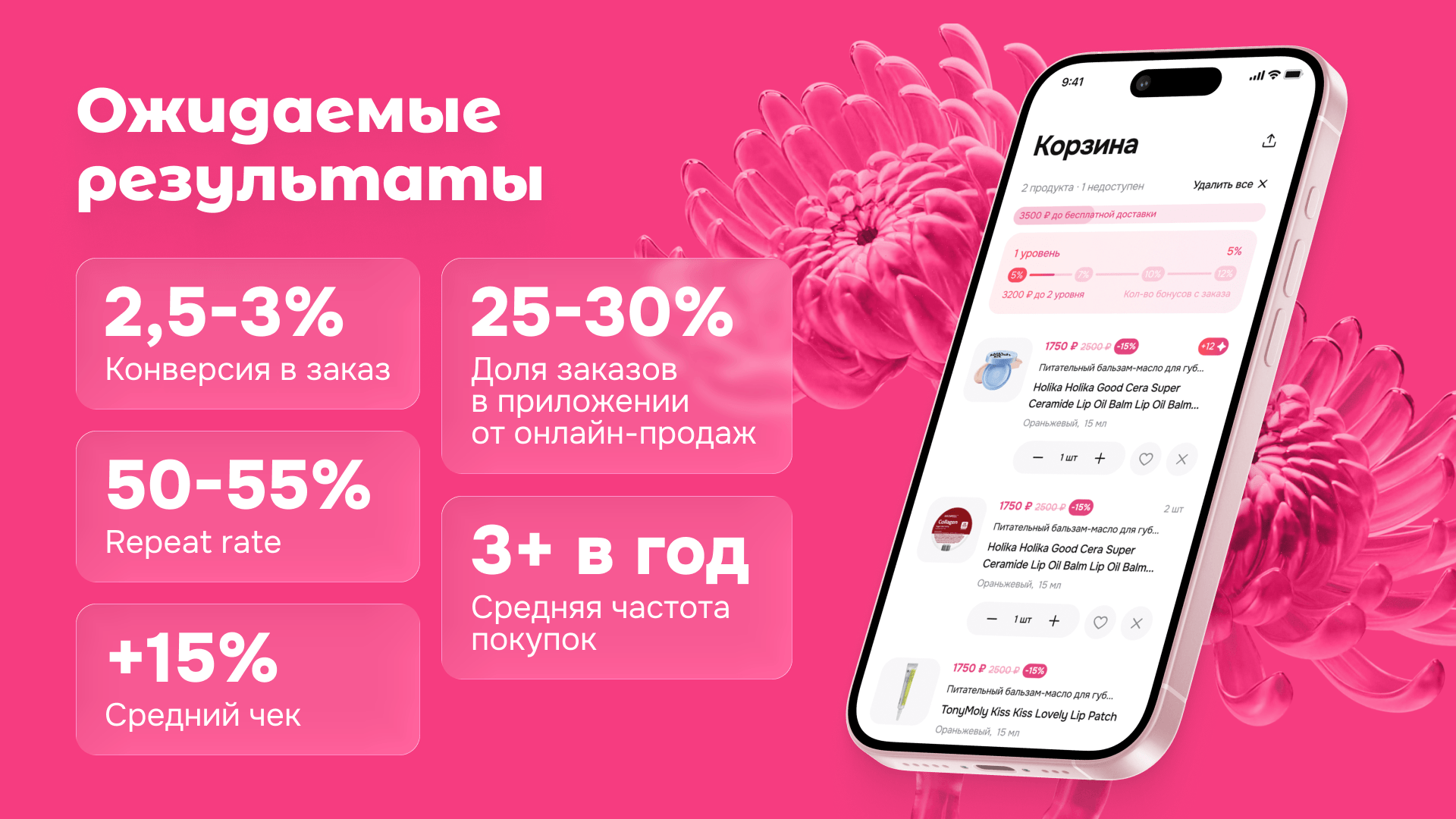 У hollyshop более 80% трафика приходит с мобильных устройств. Основной задачей мобильного приложения стало формирование сильного retention-инструмента: повышение частоты повторных покупок и оптимизация стоимости возврата клиента.