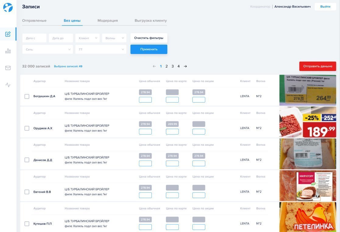 Приложения и административная панель помогают мониторить цены розничных сетей и формировать отчёты для клиентов. Программный комплекс работает с огромным массивом информации, показывая актуальную стоимость товаров конкурентов и позволяет в реальном времени передавать эту информацию выбранным компаниям.