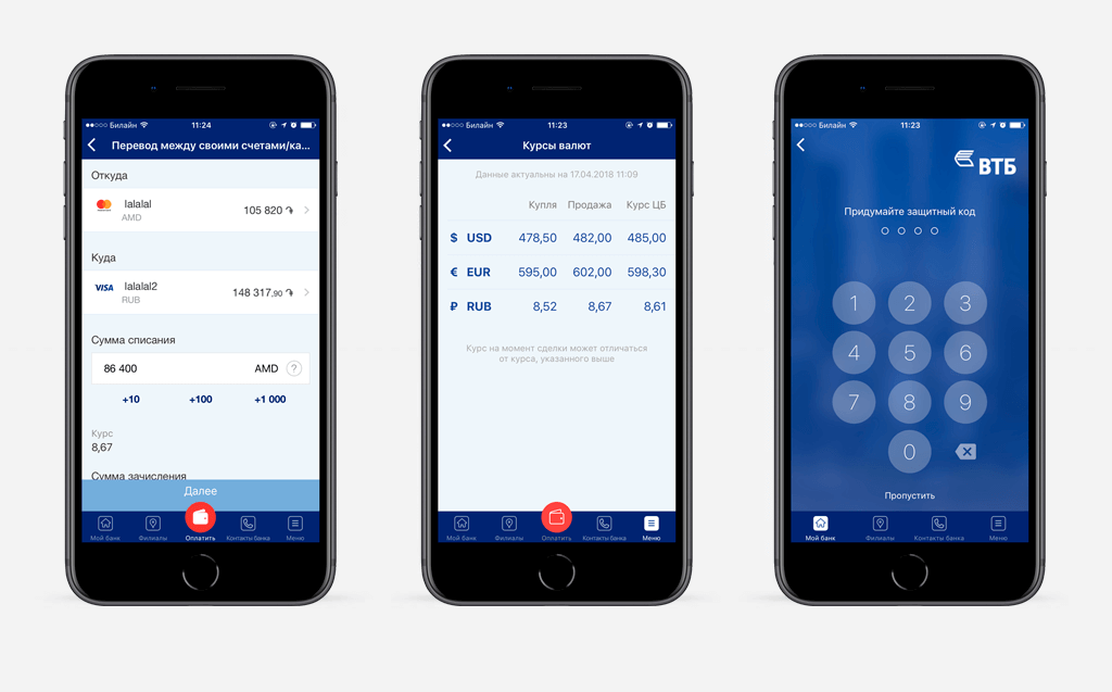 В ходе работы в приложение банка ВТБ (Армения) были внедрены следующие функции: