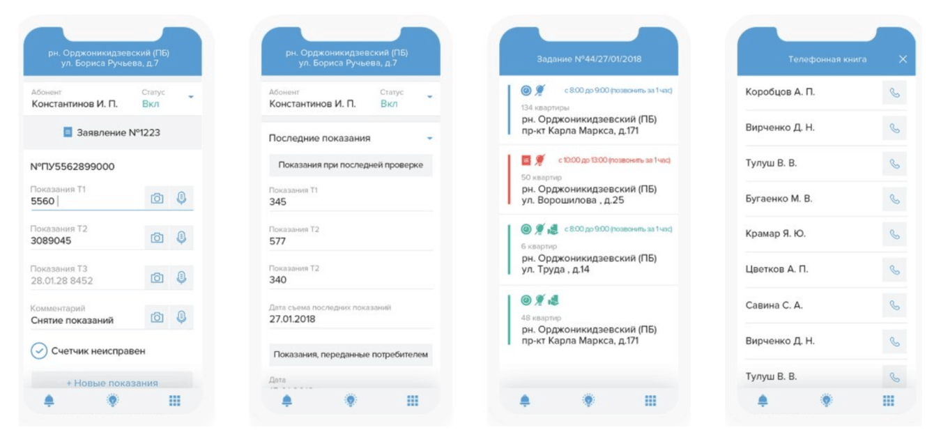 - различные типы задач и функциональные блоки: снятие показаний, отключение, вручение уведомлений, заявка;