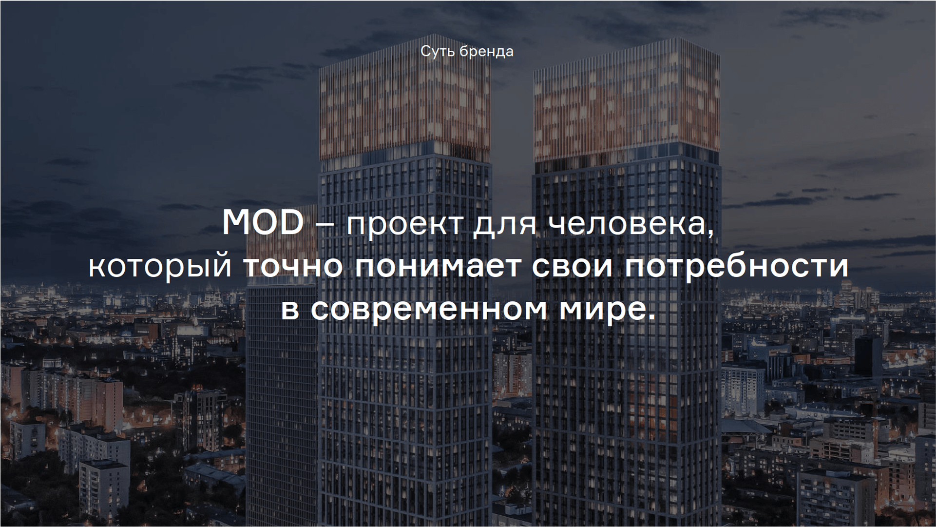 — Сам нейминг жилого комплекса — это сокращение слова „модернист“ до смелого и дерзкого MOD. Этот жилой комплекс — смелый архитектурный манифест, но не только. Это место для жизни, где сделано все для удобства, комфорта и эстетического наслаждения».