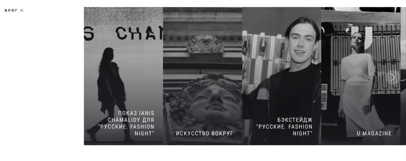 Однако мы разработали концепцию, которая позволит расширить функционал и превратить интернет-магазин в полноценную платформу для общения с аудиторией. Речь идет о добавлении раздела "Блог". Здесь можно публиковать разнообразный контент: показы мод, короткие видеоролики в формате "stories", статьи из модных журналов, эксклюзивные фотосессии и многое другое. Благодаря блогу Модный Дом Ianis Chamalidy сможет стать центром притяжения для единомышленников и создать уникальное сообщество.