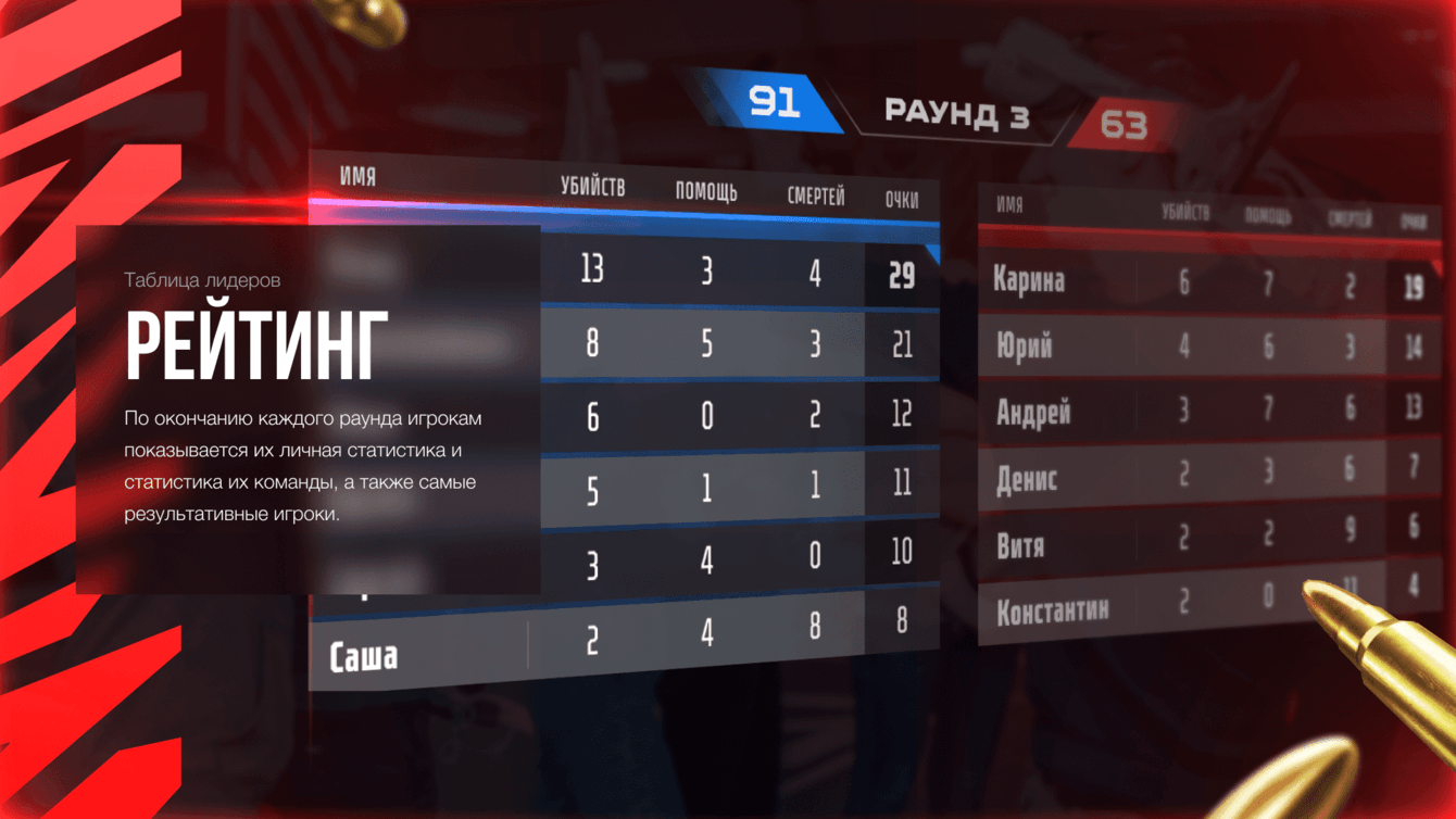 Для управления игровым процессом мы сделали отдельную версию ПО для администратора, который управляет игрой, ставит имена игрокам, выбирает и запускает карты, устанавливает длительность раунда и может в целом конфигурировать игровой процесс. Сами игровые сессии можно настраивать в зависимости от пожеланий игроков, например, можно отключить систему контроля прохождения сквозь стены.