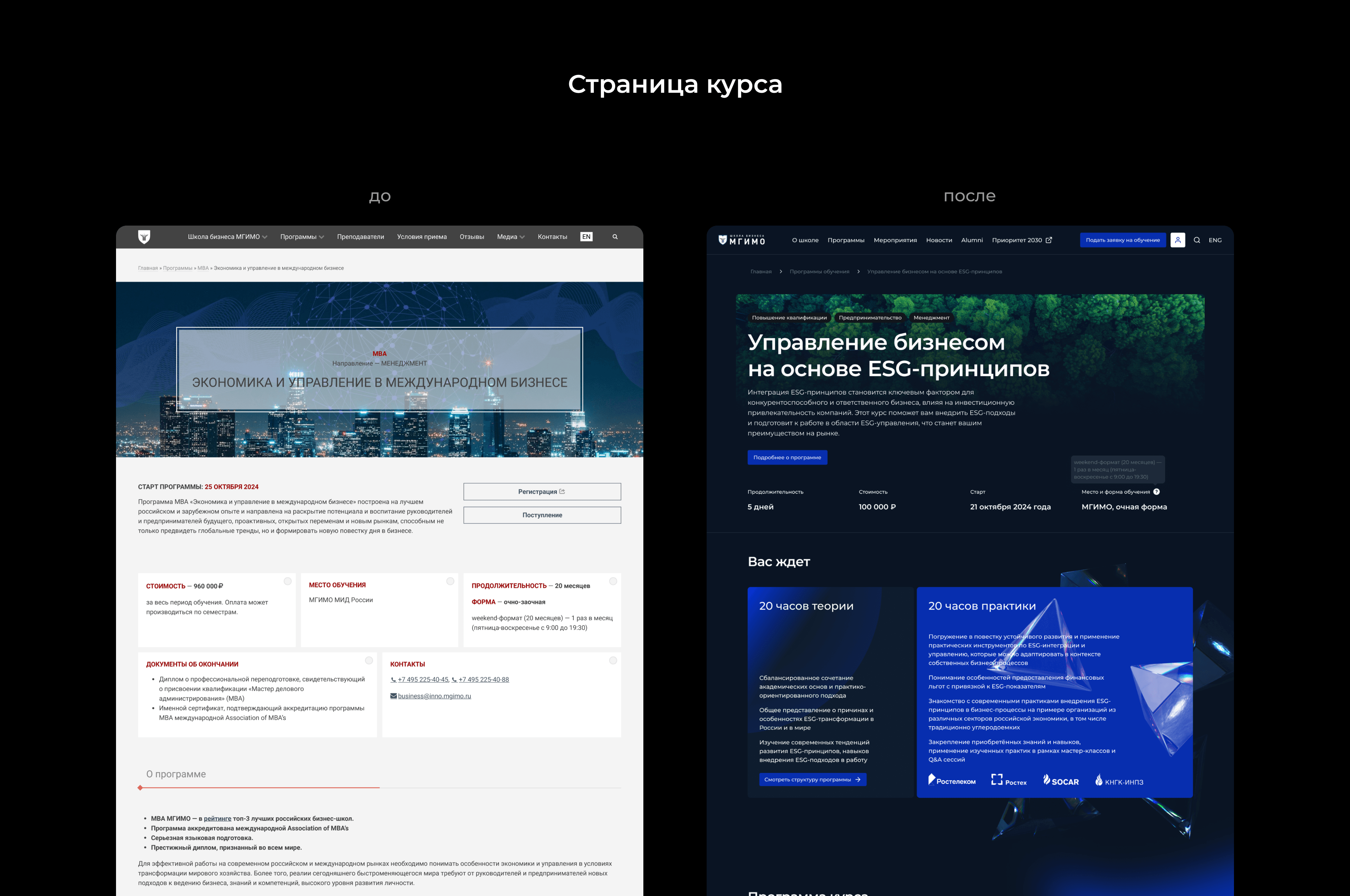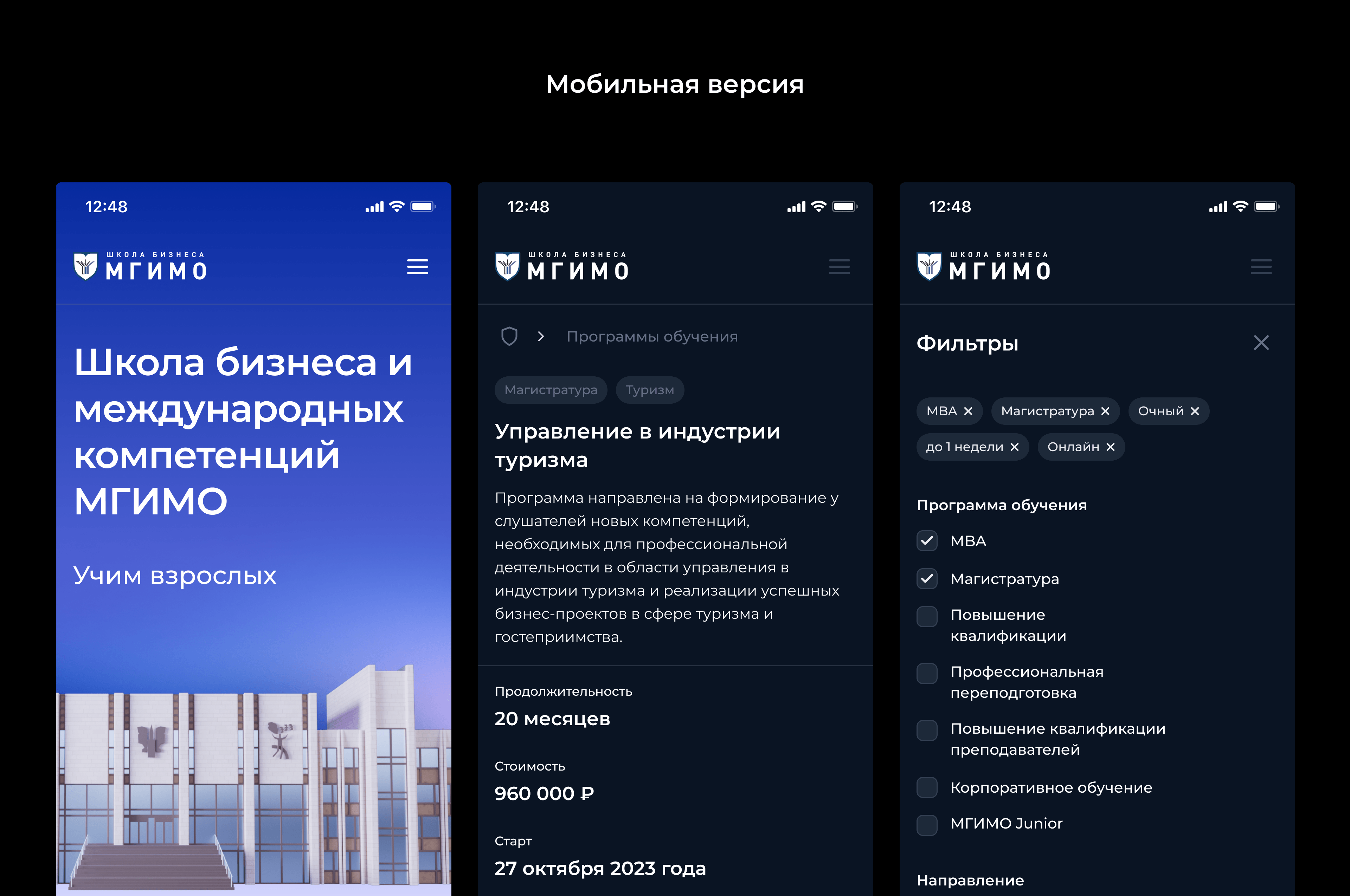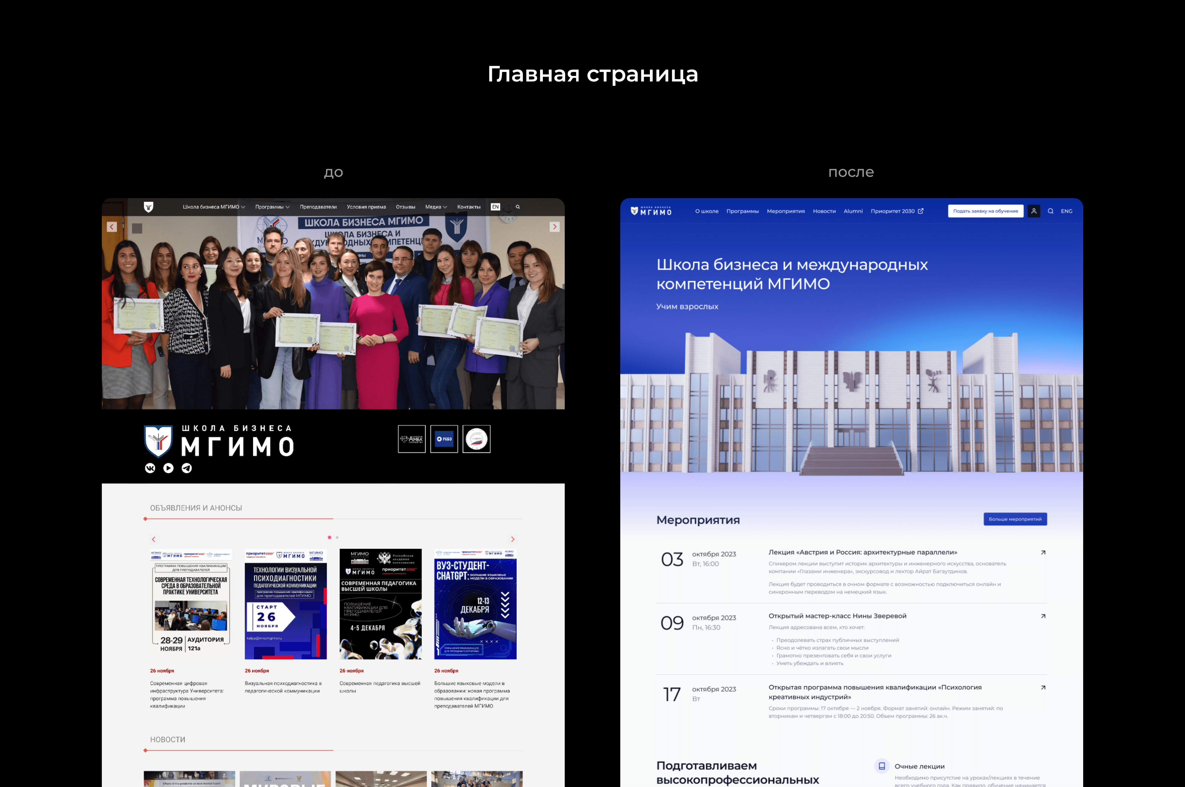 Визуальный стиль сайта обновляется с учетом последних трендов и ожиданий пользователей. Это не просто обновление, а создание новой визитной карточки Школы бизнеса МГИМО в цифровом мире.