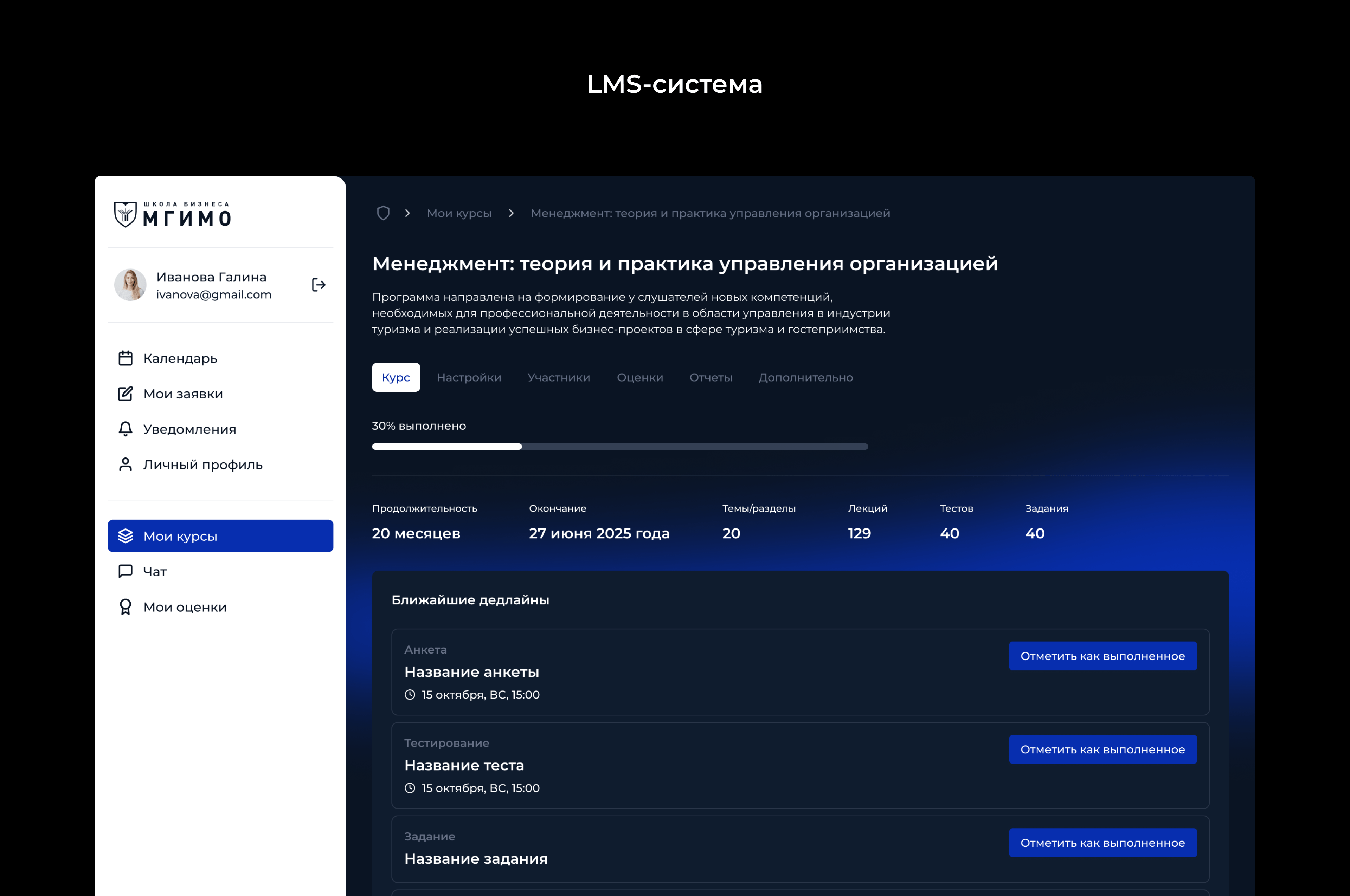Разработать дизайн-макеты и интерактивный прототип пользовательского интерфейса LMS-системы.