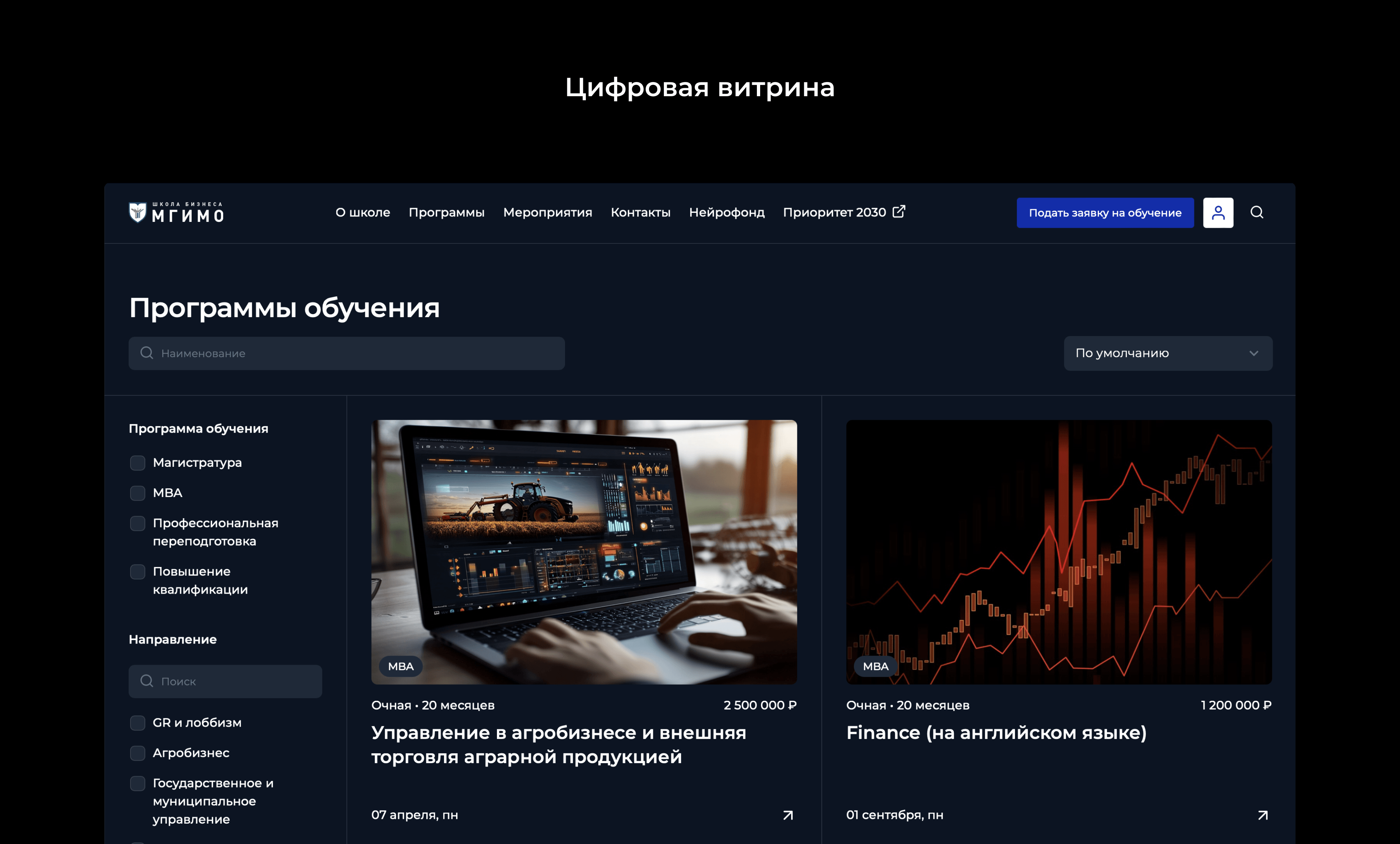 Новый раздел — "Цифровая витрина образовательных продуктов" — призван дать полное представление о курсах и программах. Студенты могут легко выбирать и оценивать все предложения.