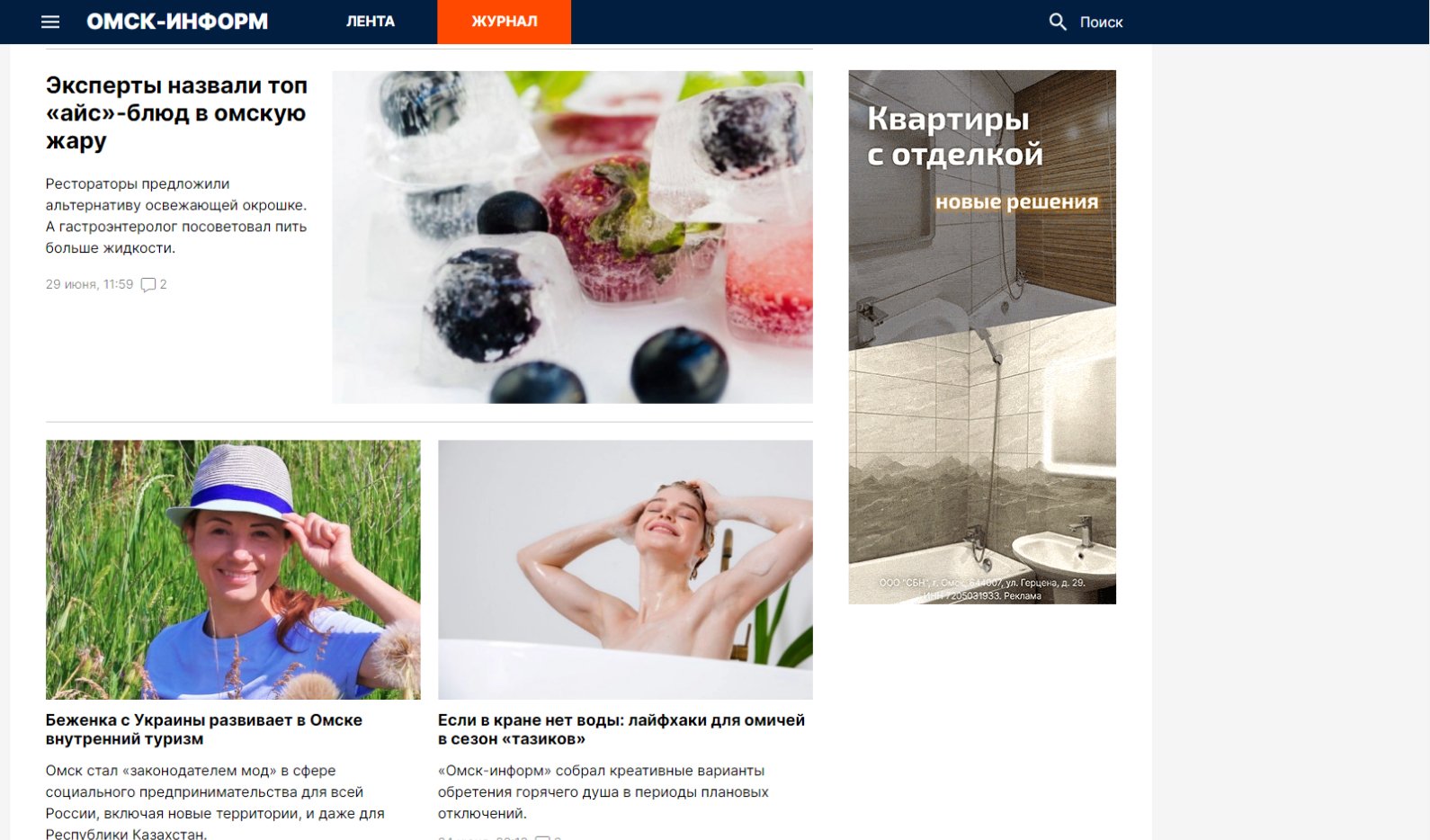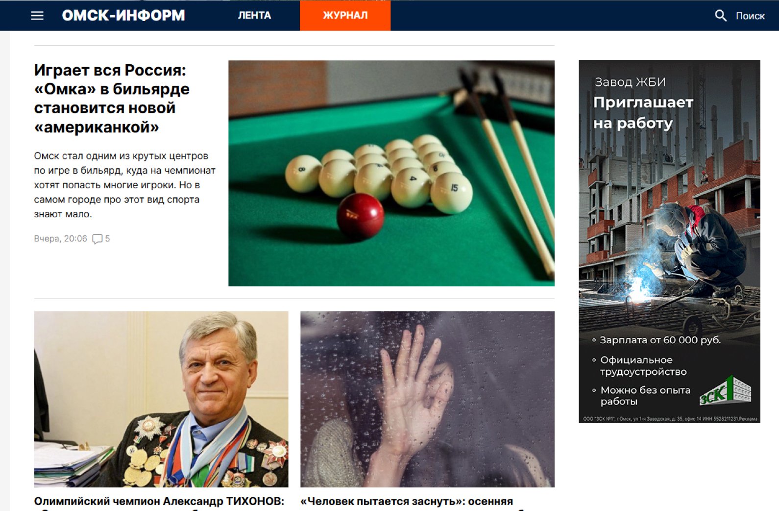 Региональное информационное агентство “Омскинформ” – одно из крупнейших региональных СМИ. За свою долгую историю дизайн портала значительно устарел и требовал обновления. Помимо внешнего вида, требовалось улучшить техническую часть, а также SEO оптимизацию портала. Данные факторы максимально влияют на уровень посещаемости и, как следствие, на доходы от размещения рекламы.