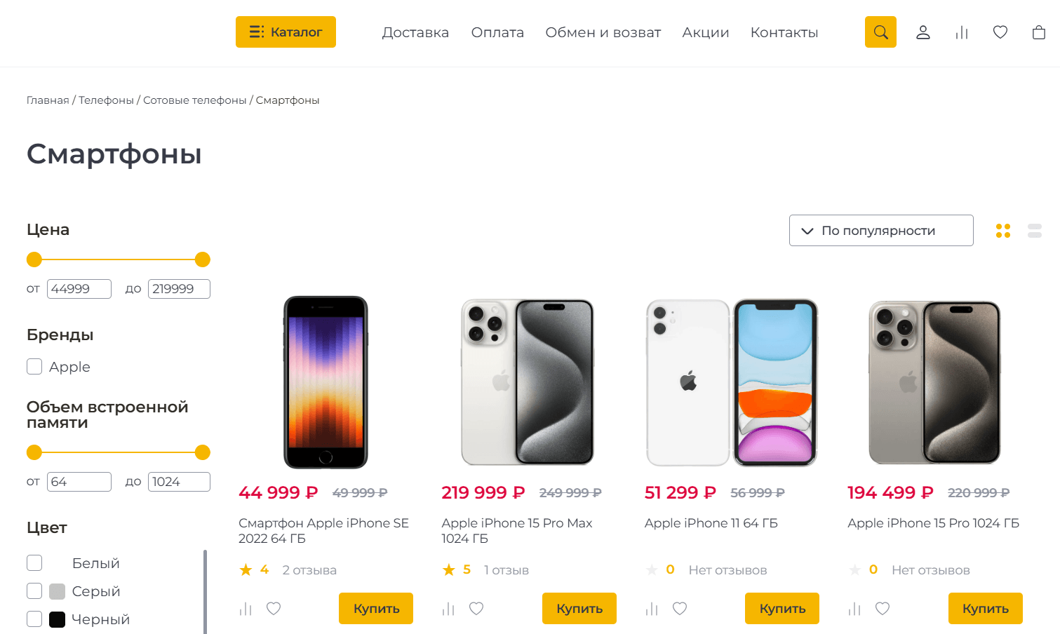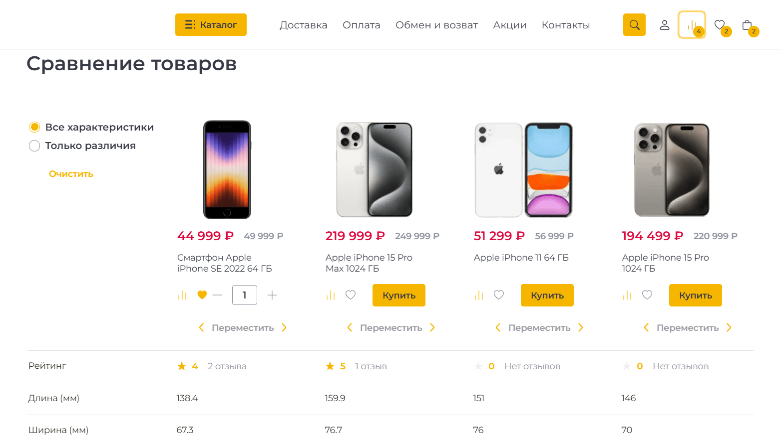 С другой стороны, основной функционал сайтов интернет магазинов, такой как каталог, фильтр товаров по характеристикам, сравнение товаров, корзина и прочее, практически одинаковый.