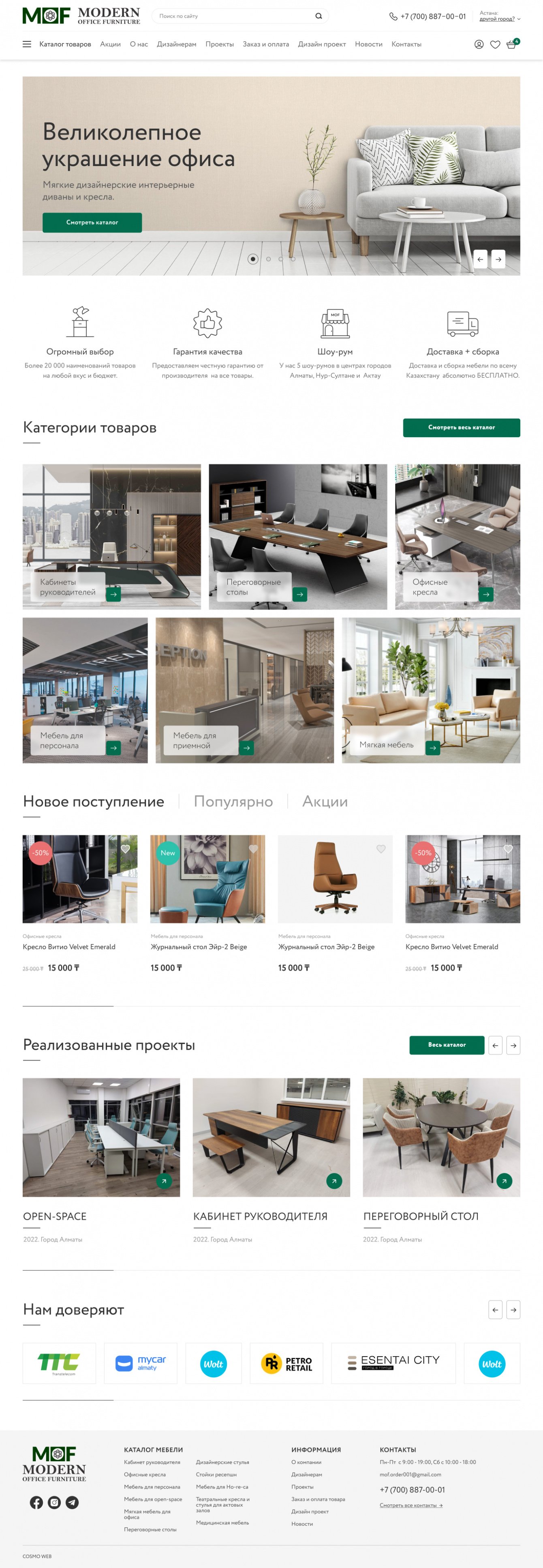 1. **Профессиональный веб-дизайн:** Разработка современного и привлекательного дизайна сайта, который отражает стиль и профессионализм компании. Использование ярких и качественных изображений офисной мебели для привлечения внимания посетителей.