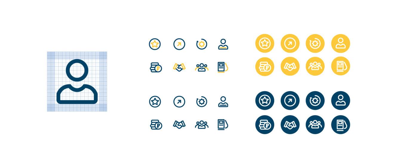 Знак логотипа состоит из «многих и разных», указывая на объединение разных игроков рынка. Один из элементов масштабируется и выходит за границы макета. Этот принцип заложен в основу системы идентификации и доносит позиционирование бренда на визуальном уровне.