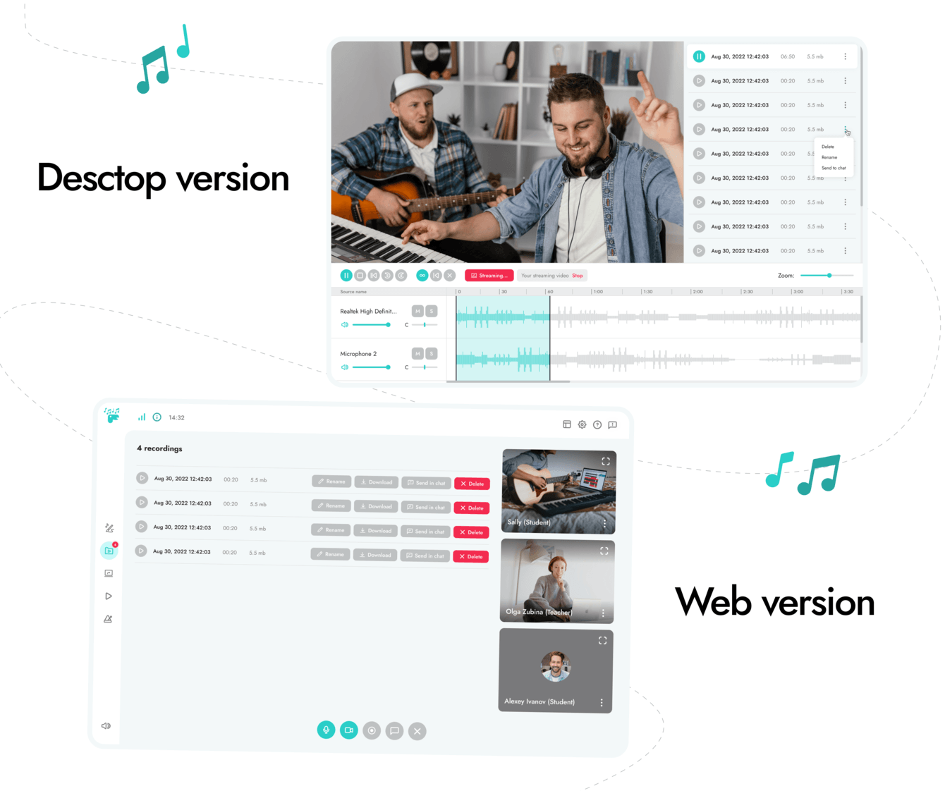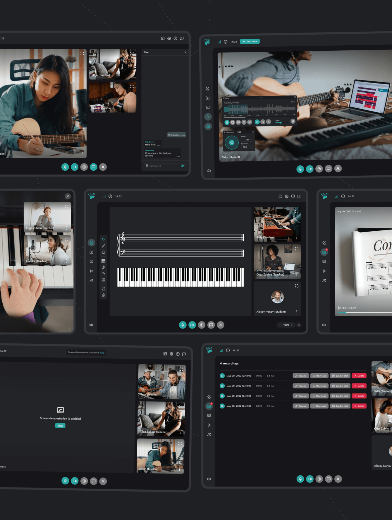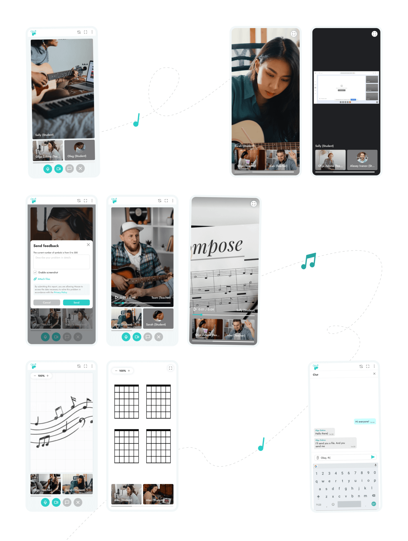 Mooze собрал в себе все преимущества видеочатов и самые необходимые функции музыкальных приложений, чтобы сделать онлайн-уроки музыки более удобными. Не нужно ничего скачивать или устанавливать. В окне браузера все работает! Тренируйтесь где хотите, улучшайте свои навыки и создавайте музыкальные шедевры.