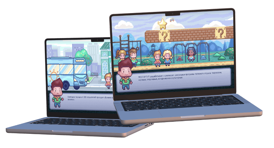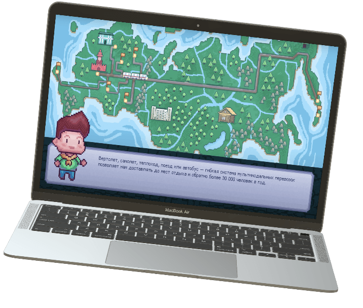 Мы создали видео в стиле консольных игр первого поколения, в котором зритель следит за прогрессом героев.