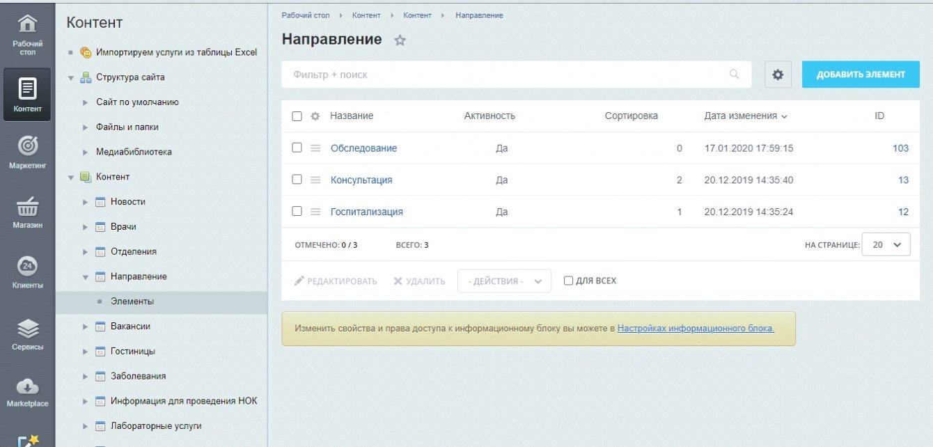 Запрограммирован на битриксе основной сайт, форма записи, личный кабинет пациентов, связь по API с ОМИС и СМС центром, чатбот для автоматических ответов пациентам.